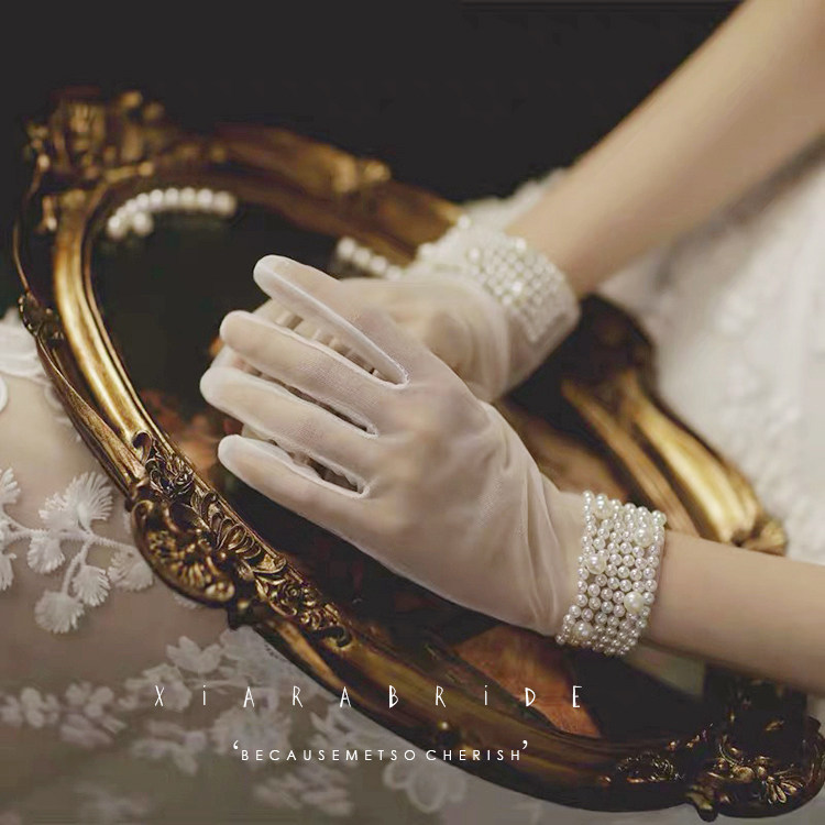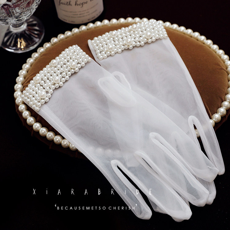 New bride gloves white female spring and autumn photo Korean wedding dress Xymi Pearl Wedding gloves