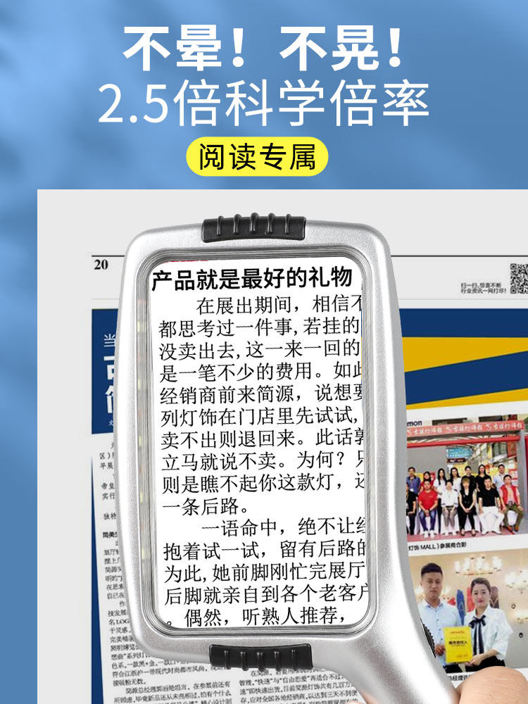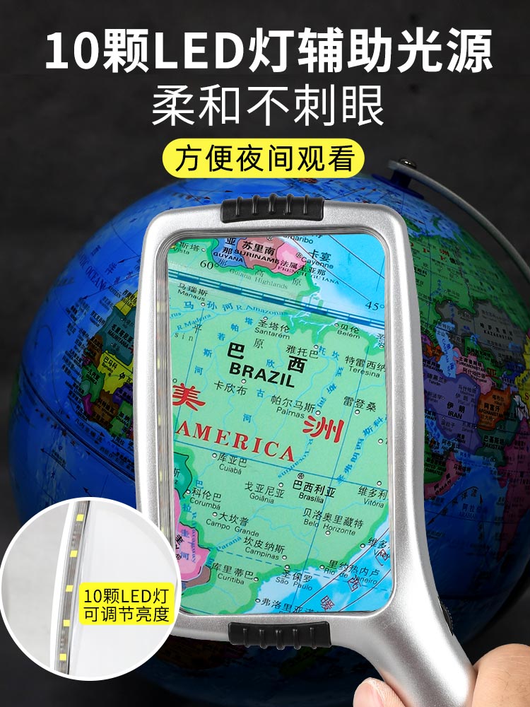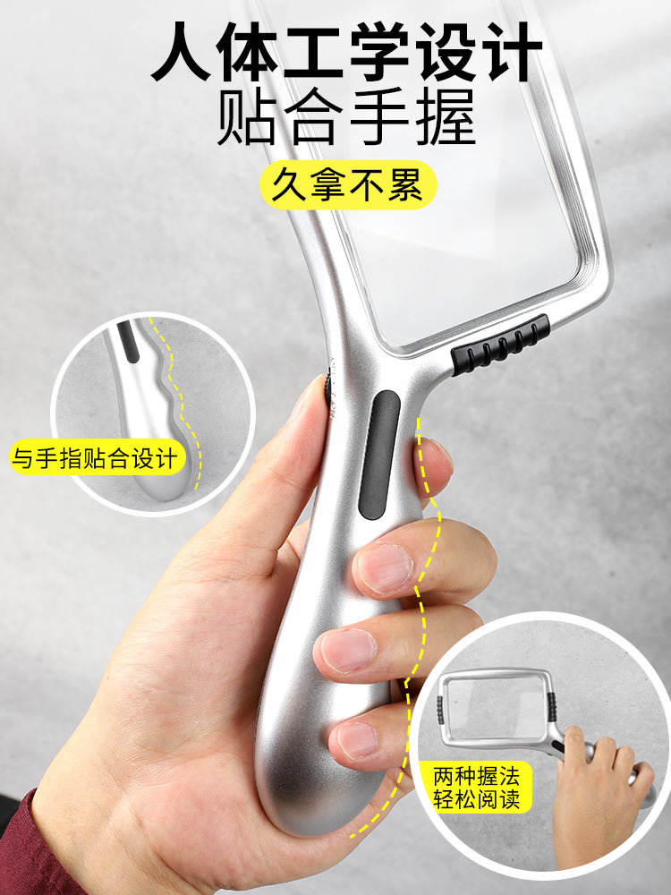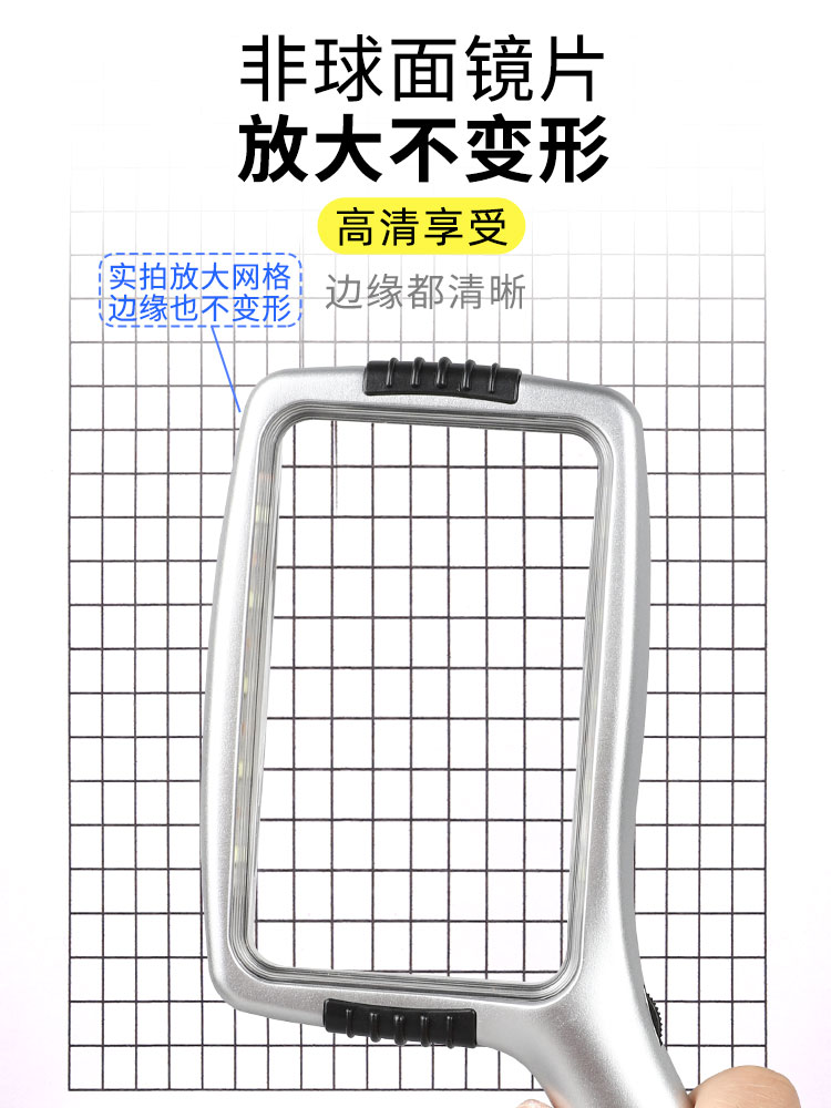 PUROO rectangular magnifier HD high-power handheld with LED lamp for the elderly with reading reading reading aspherical magnifying mirror 1000 extra large oversized mirror optics professional 602003