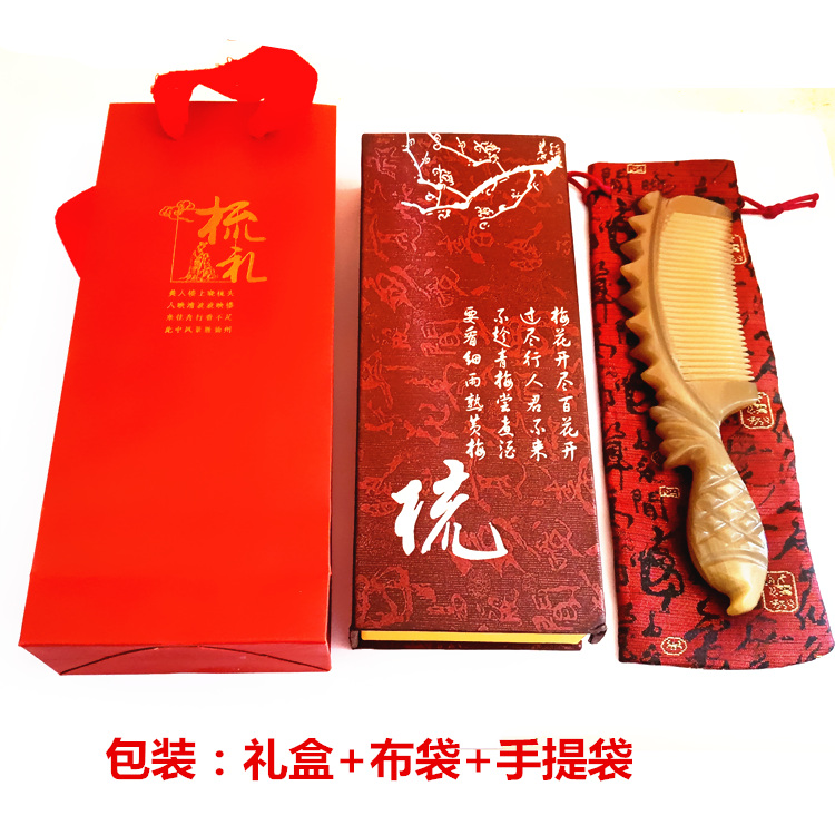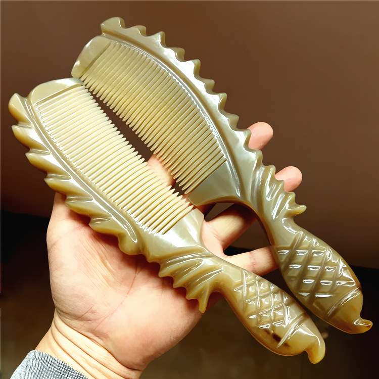 High-end boutique thickening large white yak horn hand carving comb natural authentic massage comb collection to give gifts