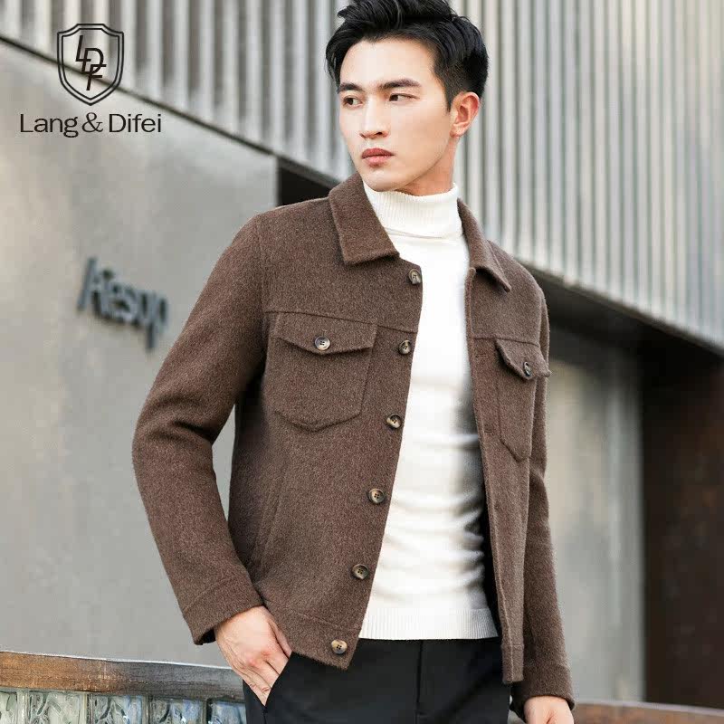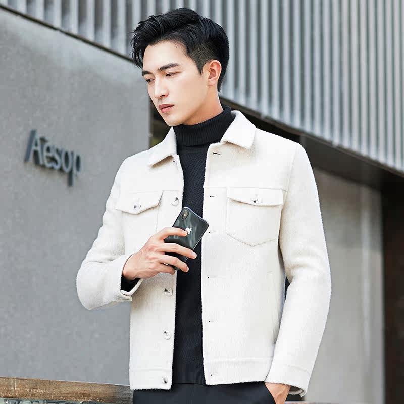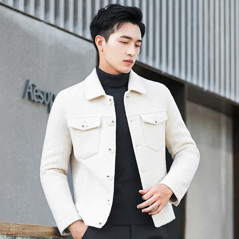 Autumn and winter jacket jacket double-sided wool coat alpaca pure handmade men's youth short Korean version of wool