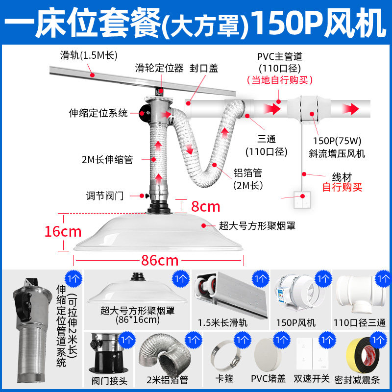 Moxibustion smoke exhaust system smoke machine health museum orbital increase positioning smoke exhaust hood smoking equipment smoke machine
