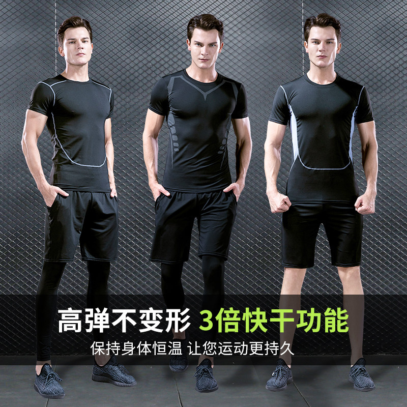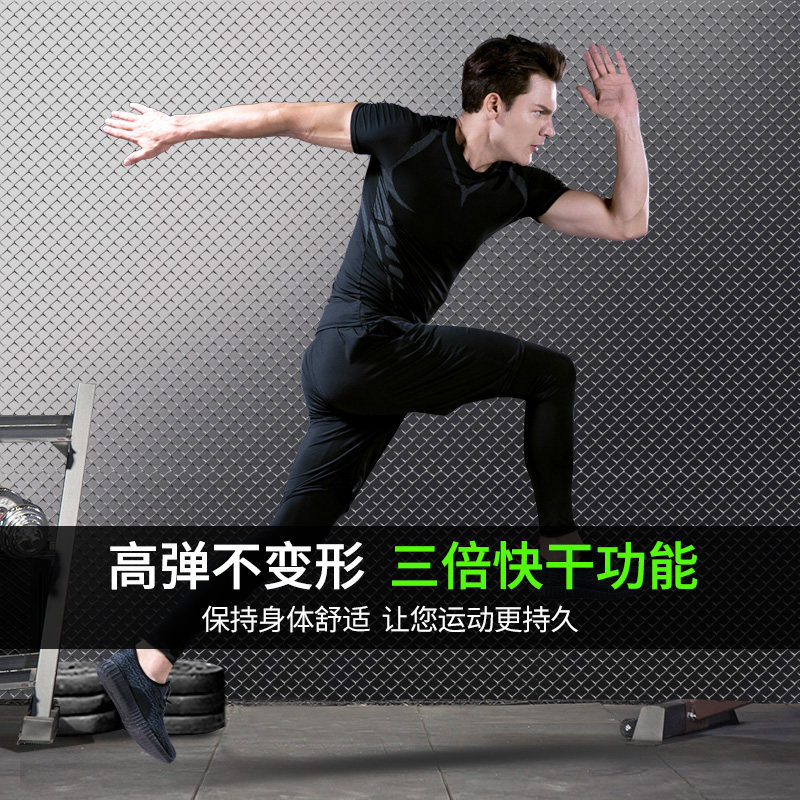 Fitness exercise three-piece set (quick-drying air high elastic) Running three-piece set Printed (quick-drying air high elastic) Ice silk three-piece set (cool summer) science fiction short-sleeved three-piece set(quick-drying air high elastic)