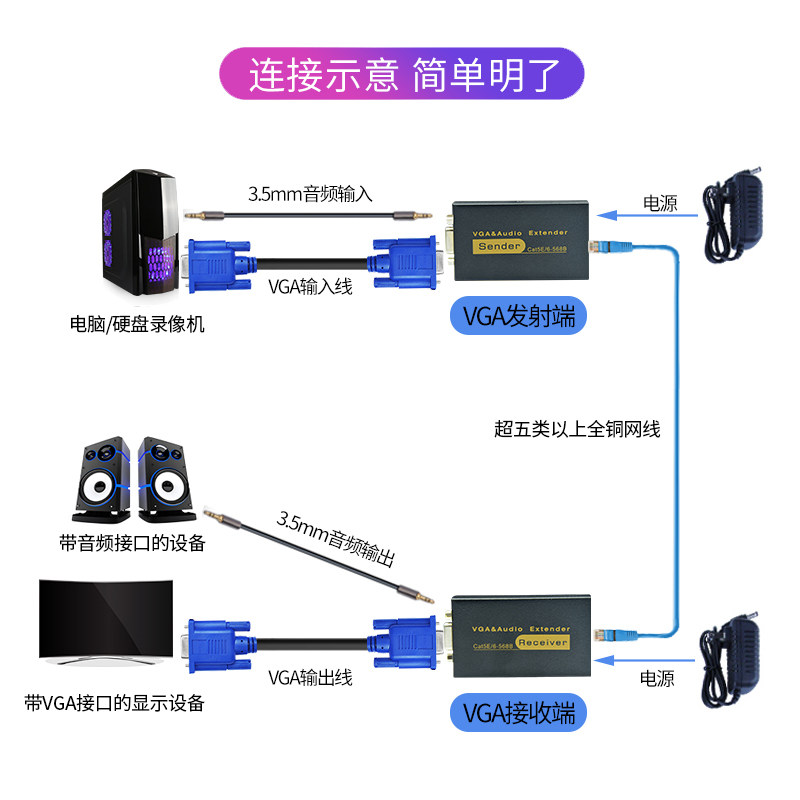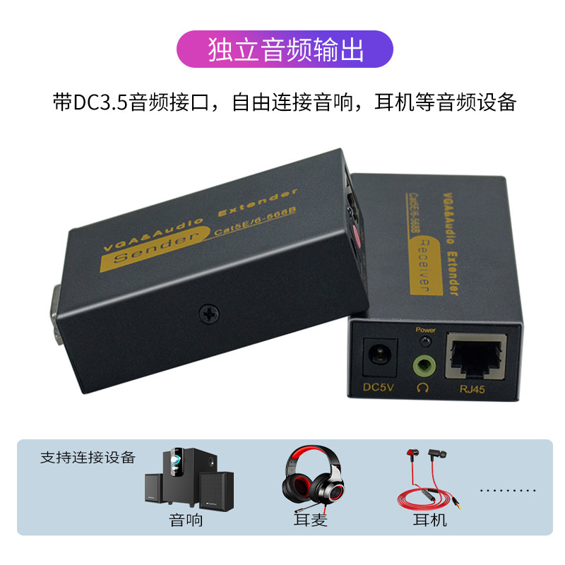 VGA extender 100 meters monitoring host to RJ45 single network cable network signal amplification transmission audio and video synchronization