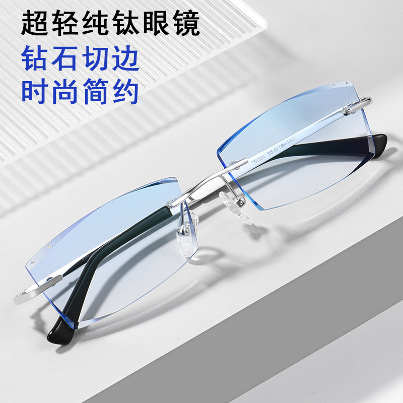 Ultra light pure titanium frame-free side-sight glasses can be equipped with degree scattered color discolored glasses frame large face mirror