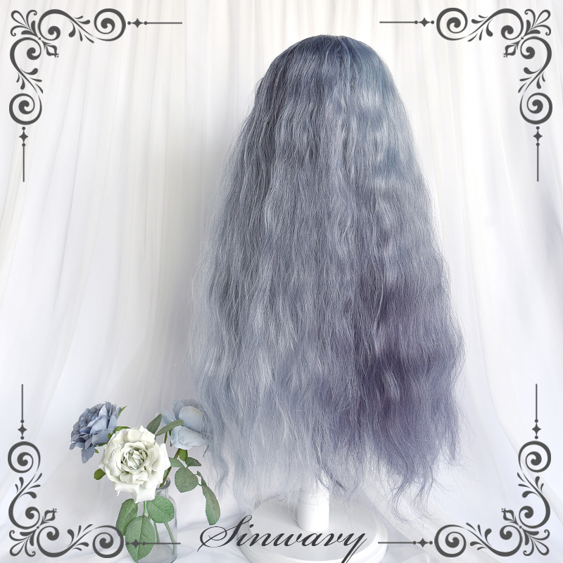 Swan-Halloween grey Yin and Yin head dark black wool roll cos makeup Gothic long curly hair -) Smoked black and white)