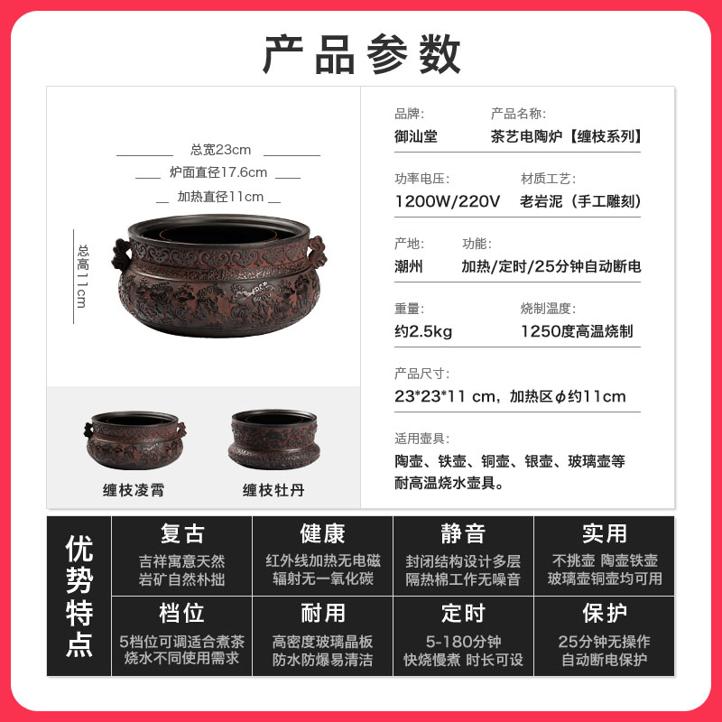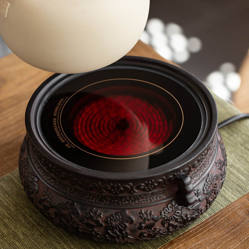 Chinese style retro cooking tea black crystal stove Home mute tea stove Desktop iron pot silver pot burning water to cook tea pottery stove