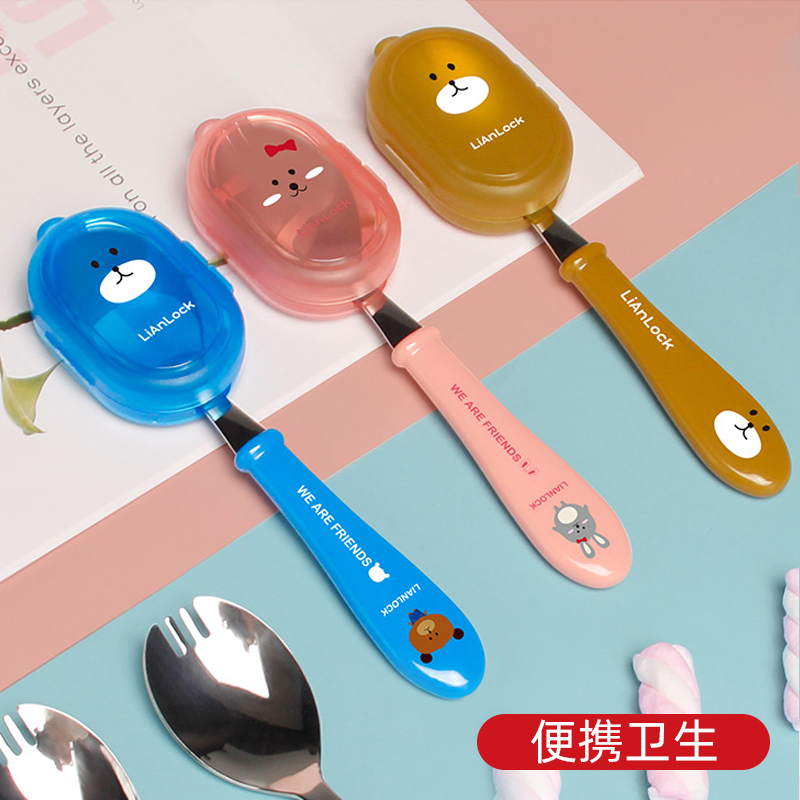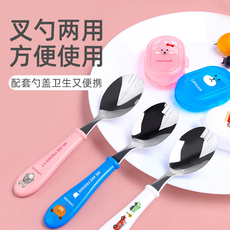 Korea imports a child's tableware spoon and fork one baby fork spoon 304 stainless steel with lid fork spoon