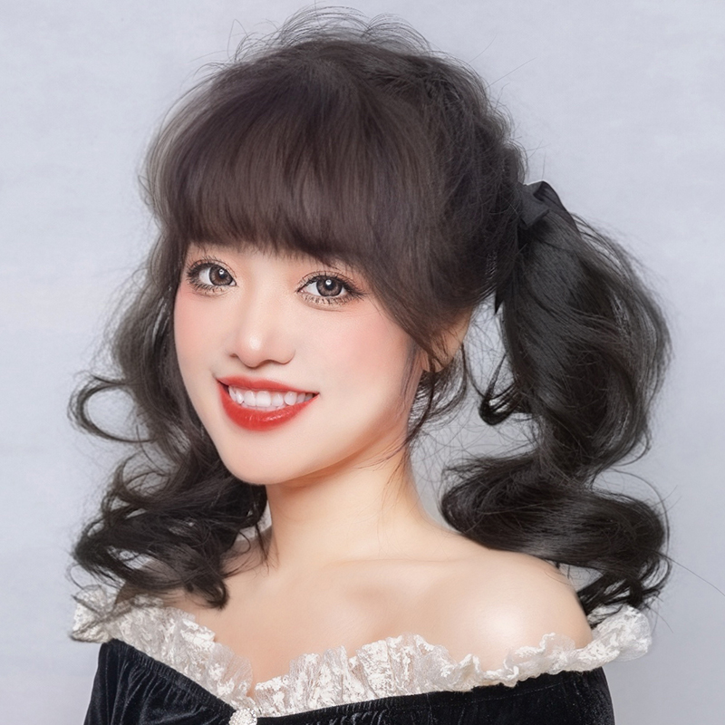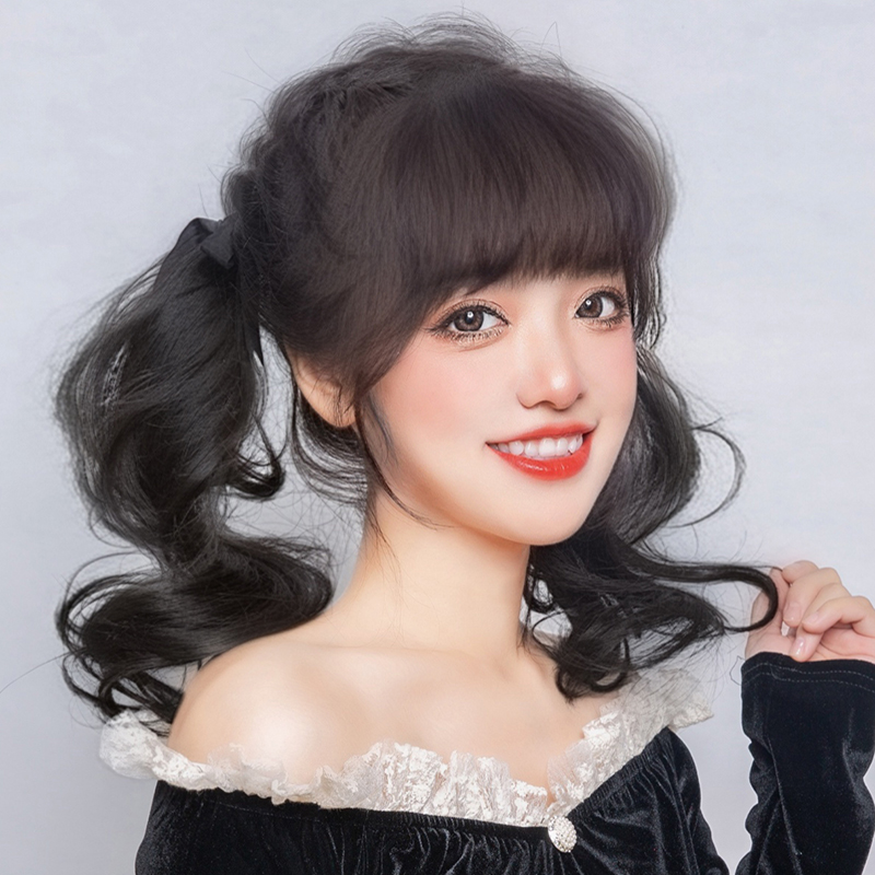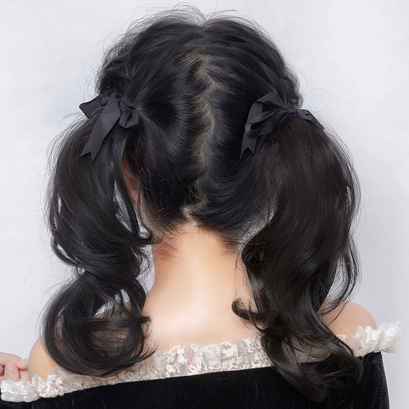 Ultra-light jk double ponytail wig female short curly hair strap cute loli lolita natural realistic medium and long curly hair
