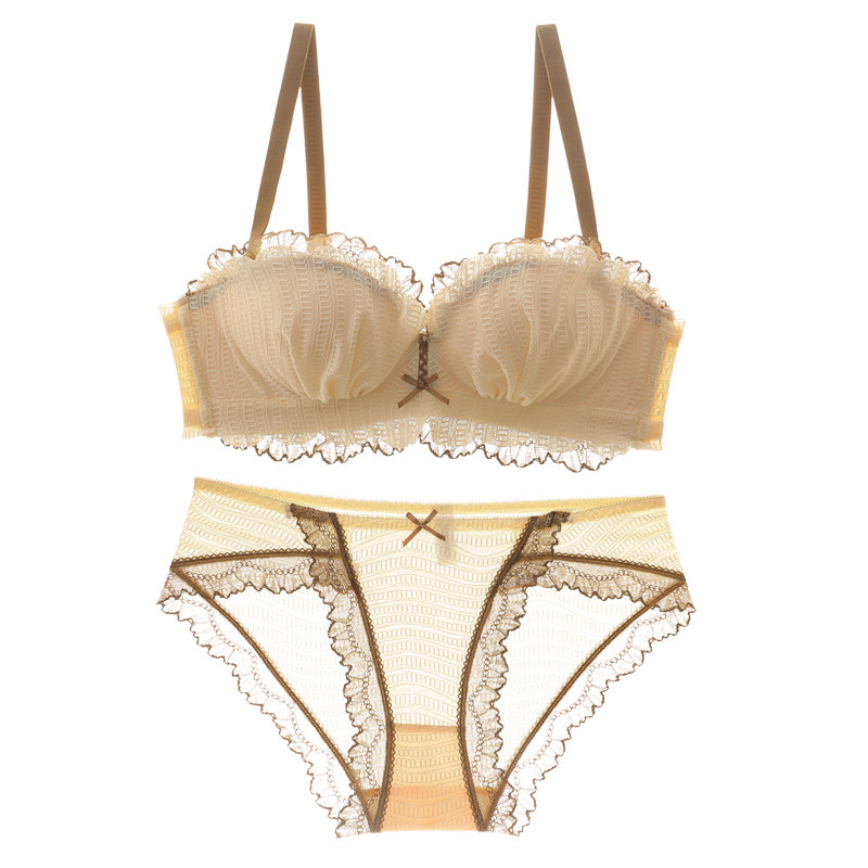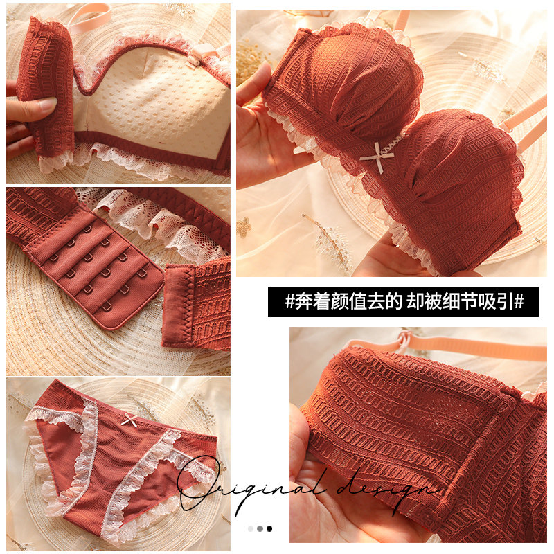 Latex underwear women's small breasts gathered without underwire bra half cup adjustable flat bra Japanese girl bra thin model