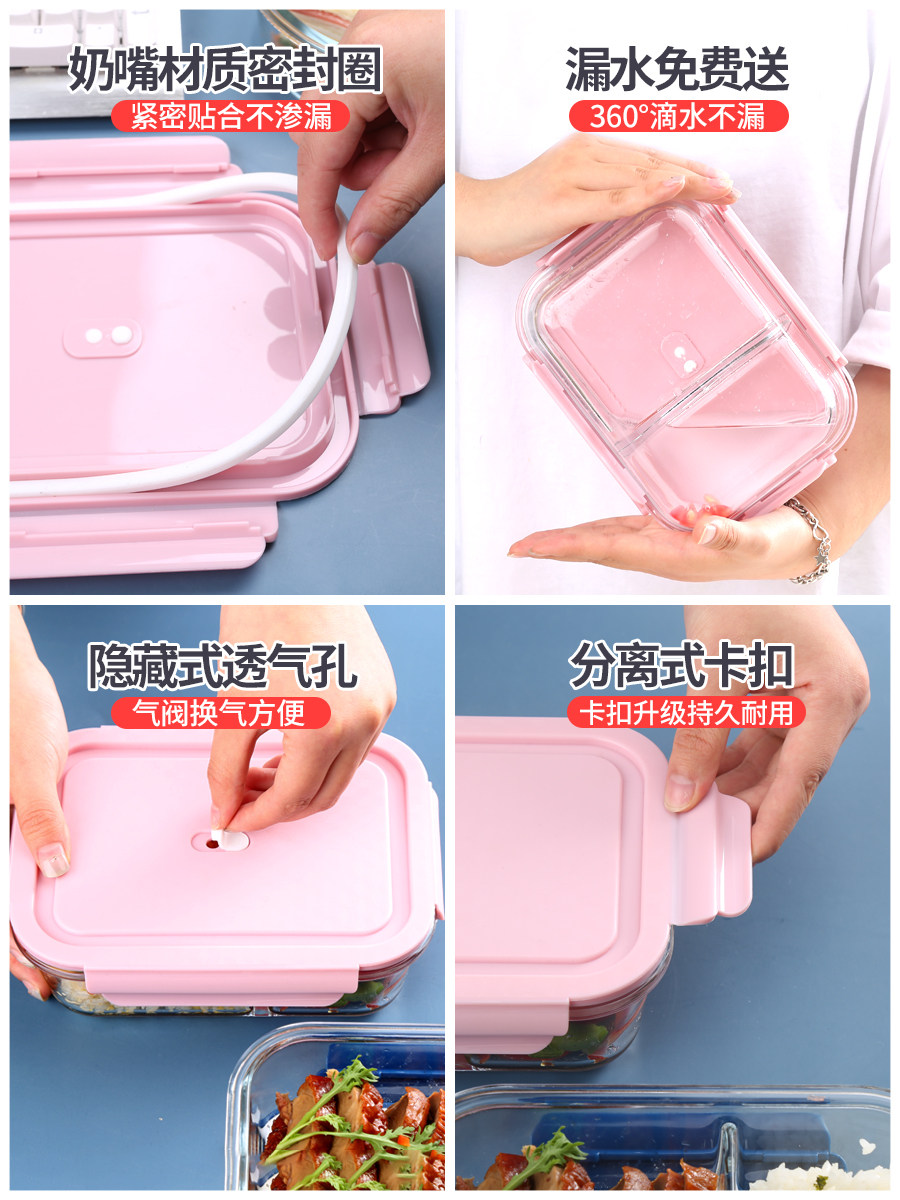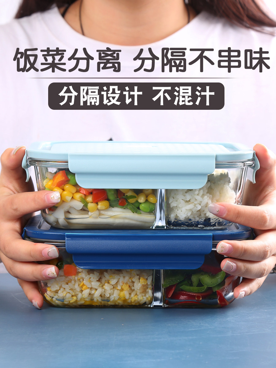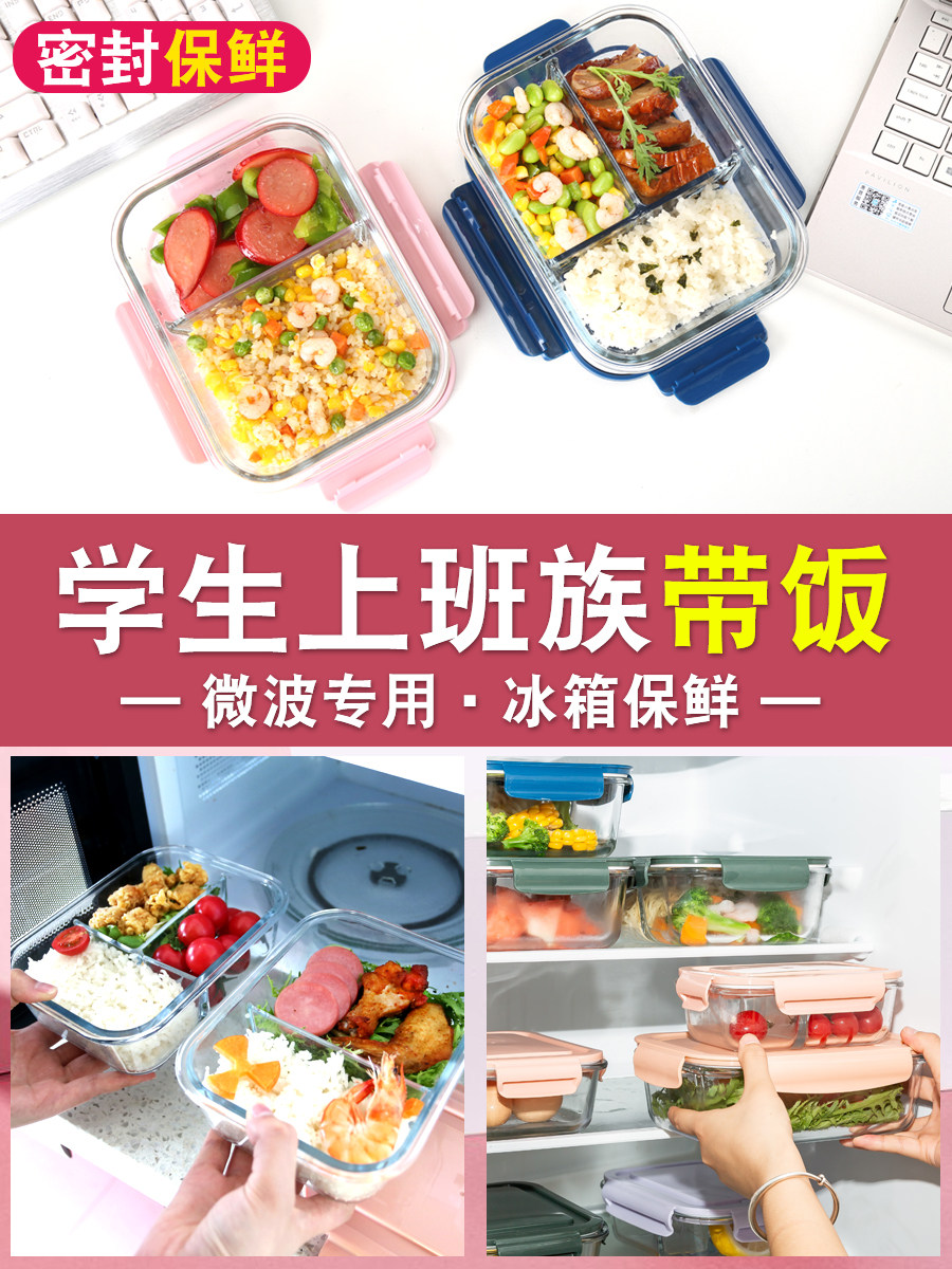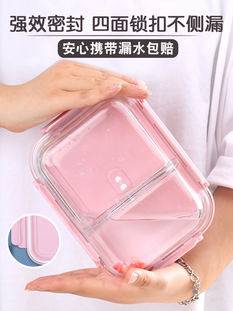 Students are female microwave oven heating lunch box separated office family with cover lunch box glass preservation special bowl