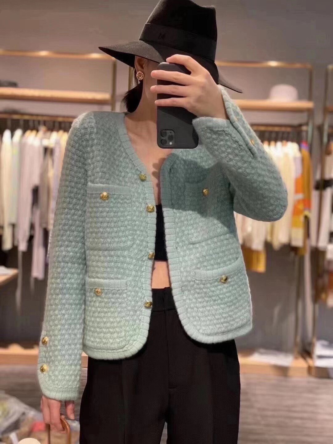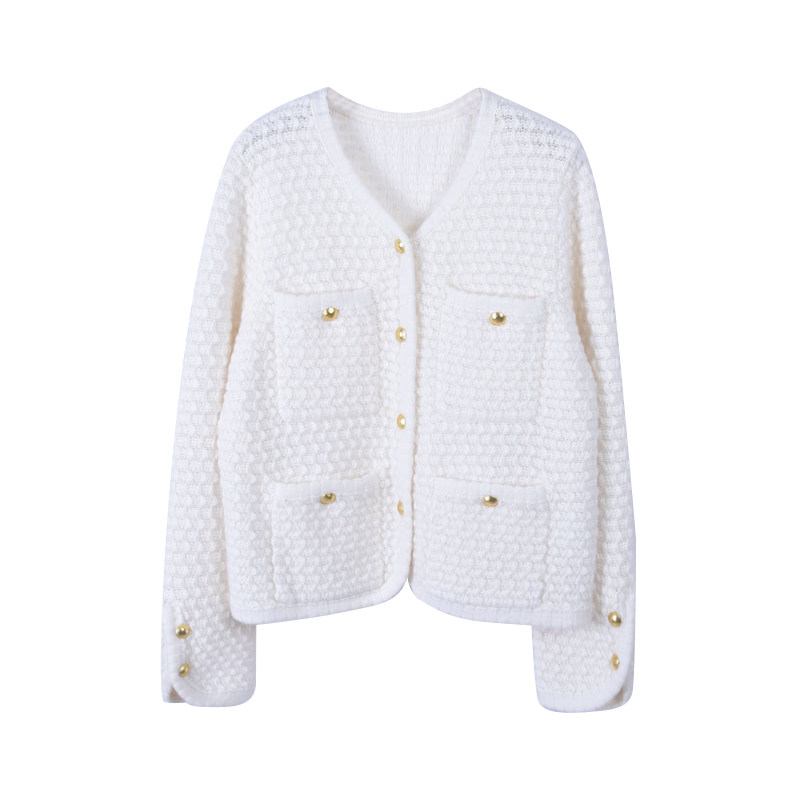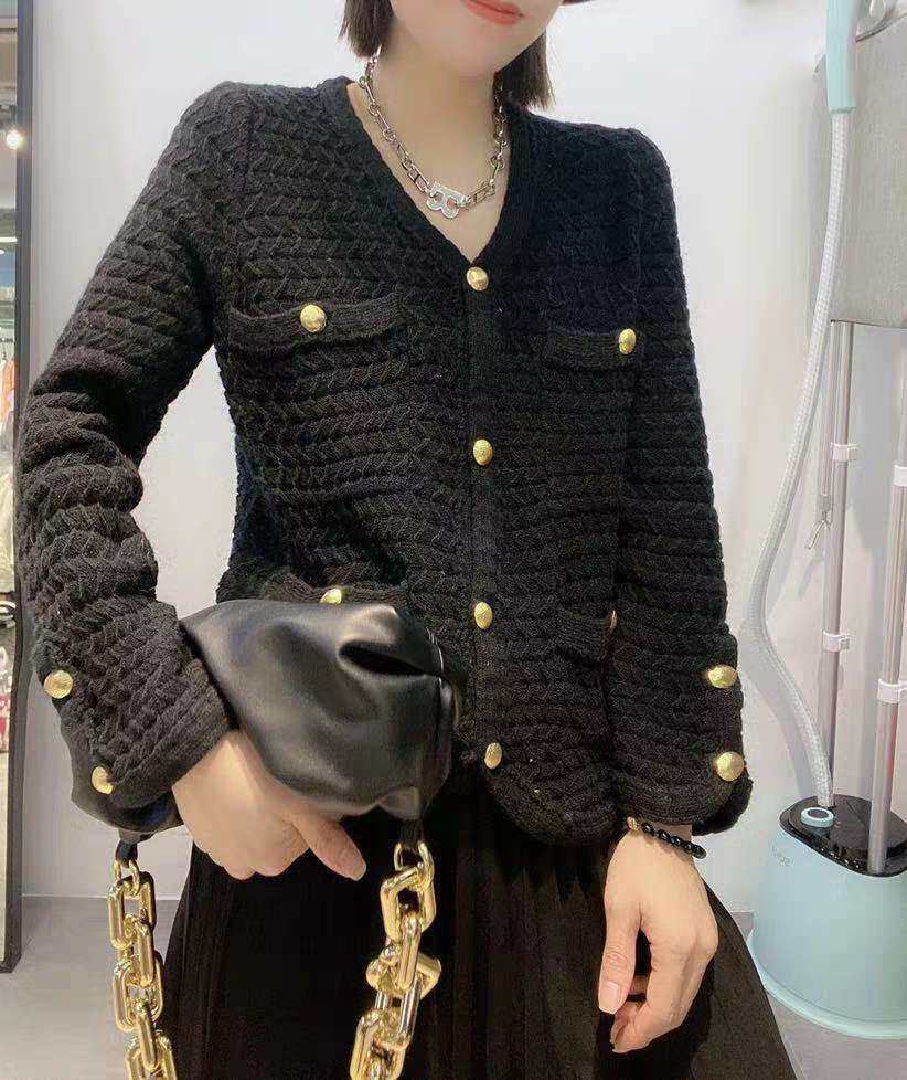 20 Autumn Winter New 100 Hitch Cashmere Sweatshirt Woman Knit Cardiovert Short fashion V collar jacket thickened Wavy Sweater-Taobao