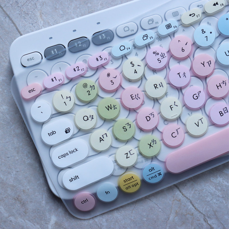 Rotech Logitech k380 Korea-Japan Franco-German TaRussian-Thai keyboard adhesive film Five-pen arabic Bluetooth ultra-thin full coverage bin Jie large Easy-to-traditional lower case pinyin Note character root patch dust resistant