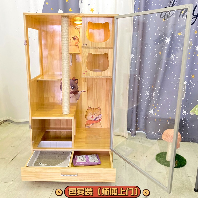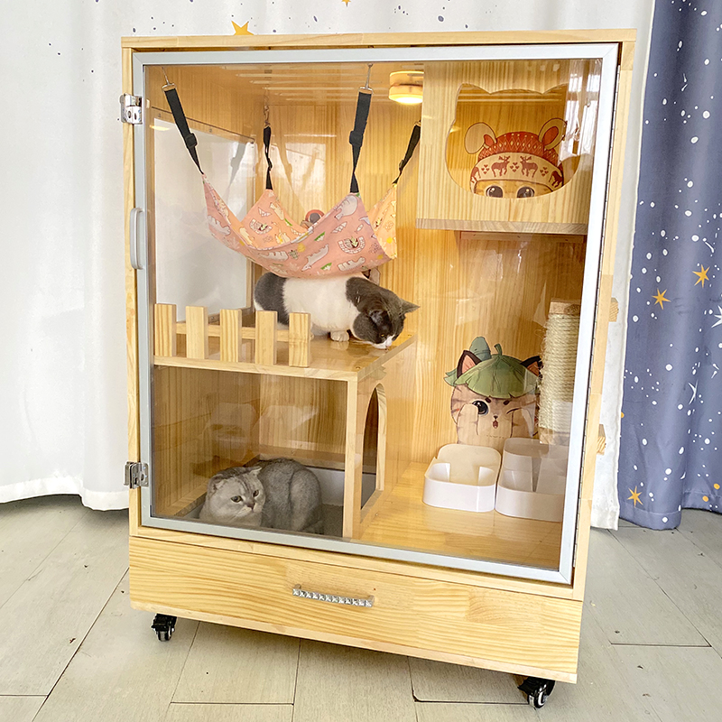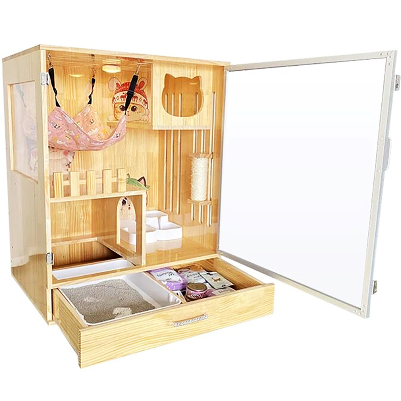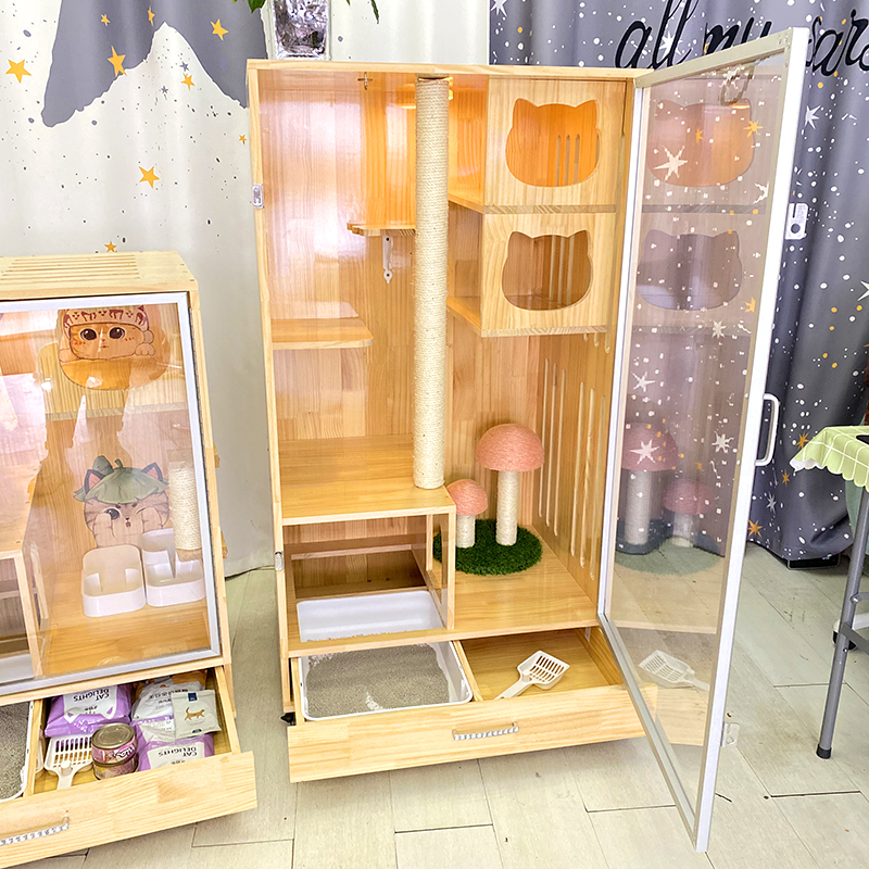 Cat Villa Cat House Solid Wood Quality Home Cat House With Drawer Toilet Interior Small Luxury Cat Cage Apartment Customised