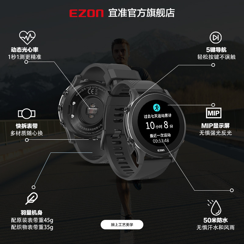 EZON Yi zhun sports watch men's and women running heart rate smart watch marathon GPS waterproof electronic watch R6