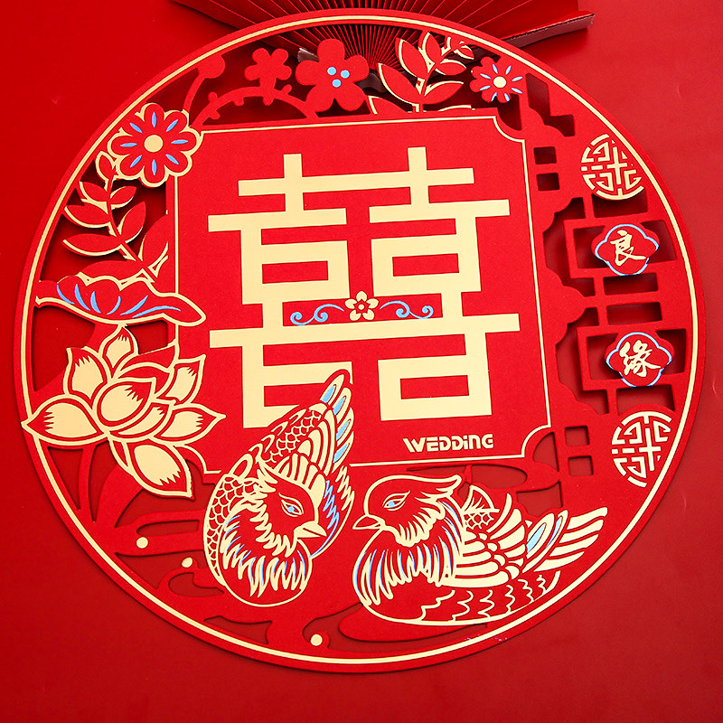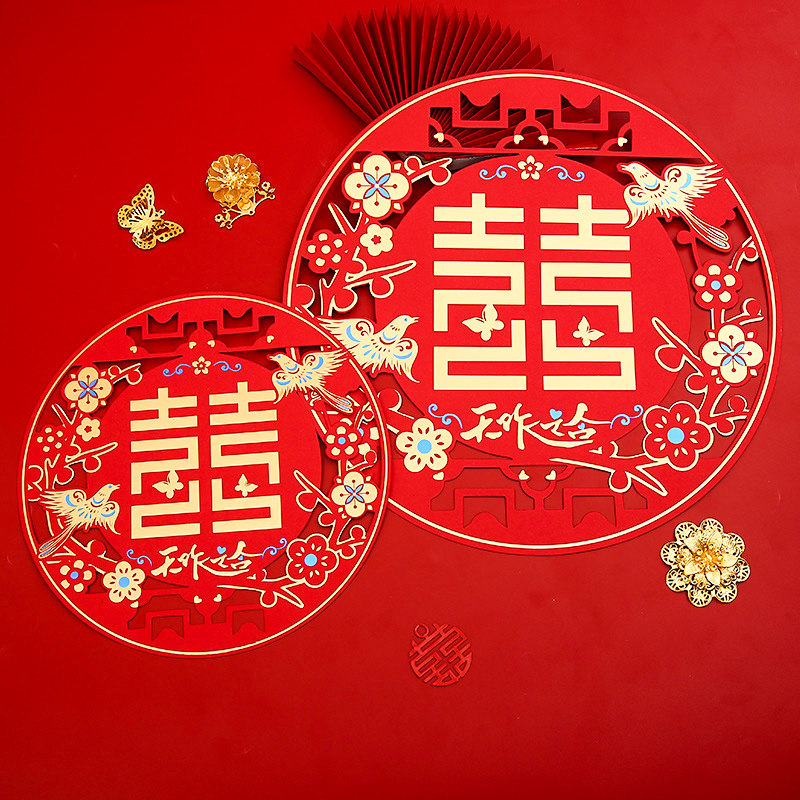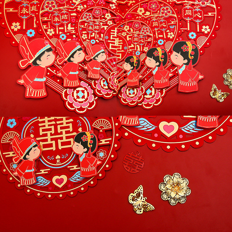 Wedding Supplies Grand All-New Room Placement Living Room Door Chinese Creative bronzed Joy Character Stickler Wedding wall Wall Sticker Decoration