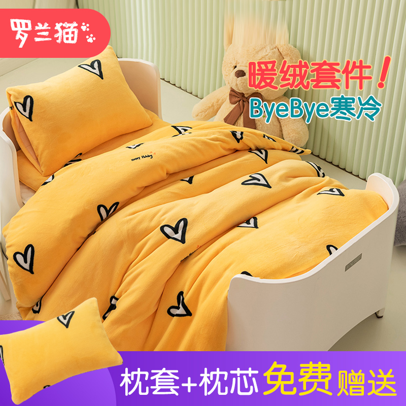 Kindergarten Quilt Three Sets Winter Thickened Coral Suede Quilt Cover Children's Bed Goods Autumn And Winter Warm Afternoon Sleep 6 pieces