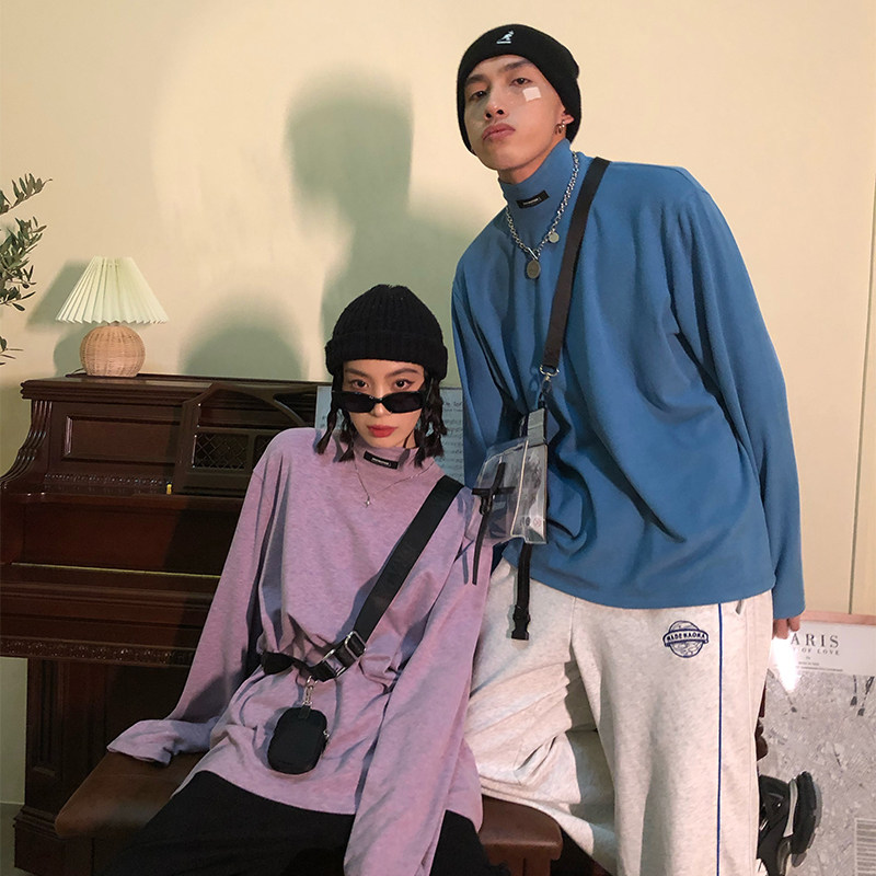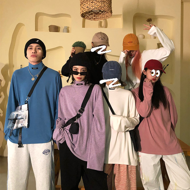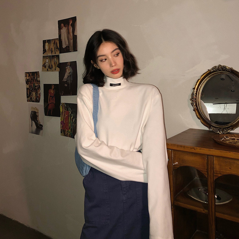 Quarreled pure color half height collar bottom shirt woman 2022 spring new easy port wind inside a long sleeve T-shirt tide X