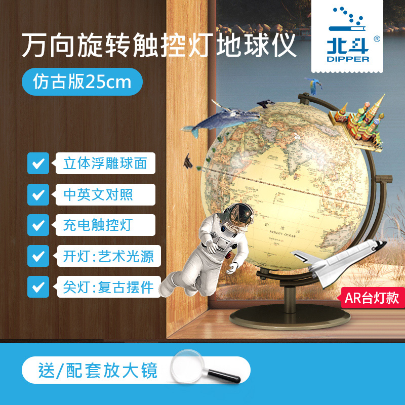 Beidou creative universal AR globe office bedroom home retro ornaments 3d three-dimensional relief charging touch adjustable night table lamp luminous children's junior high school students large gift