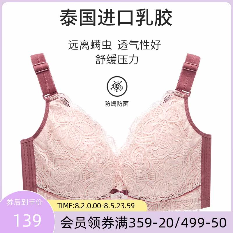 MsShe plus size new spring without steel rims anti-bacteria and mite latex anti-sagging full cup lace small cutie