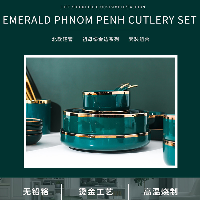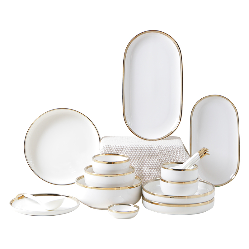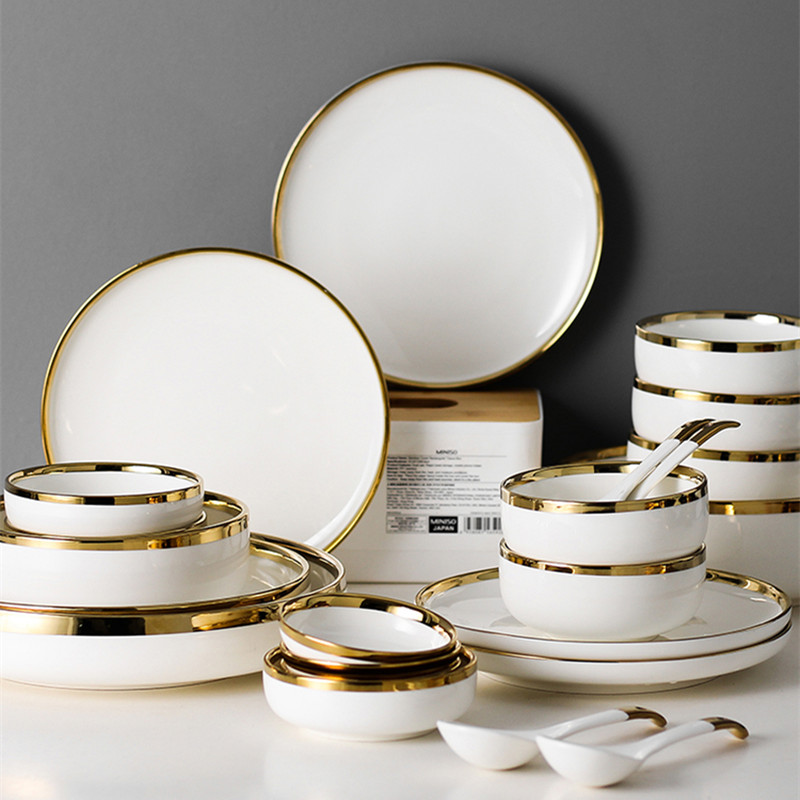 ANGELSGER Light luxury Nordic tableware set Ceramic bowl Simple creative plate combination Household dish set