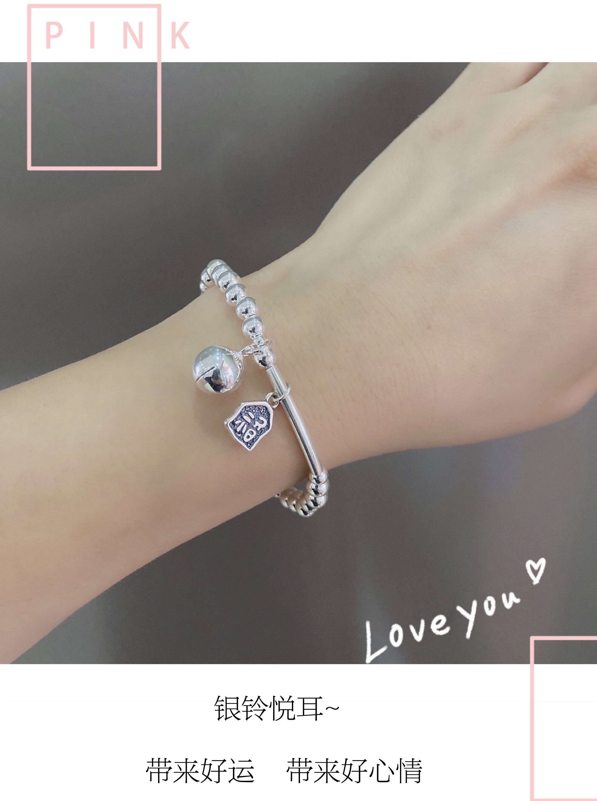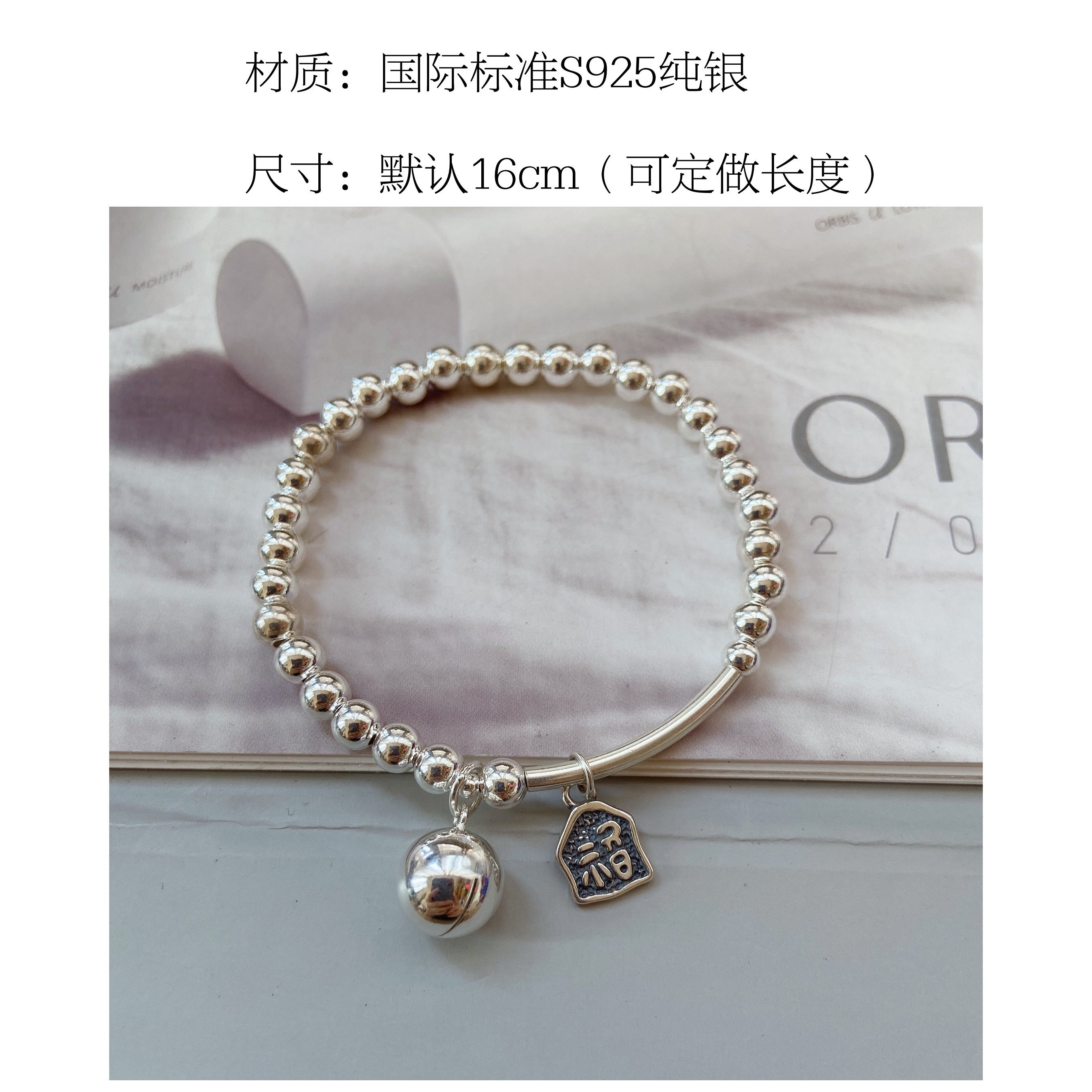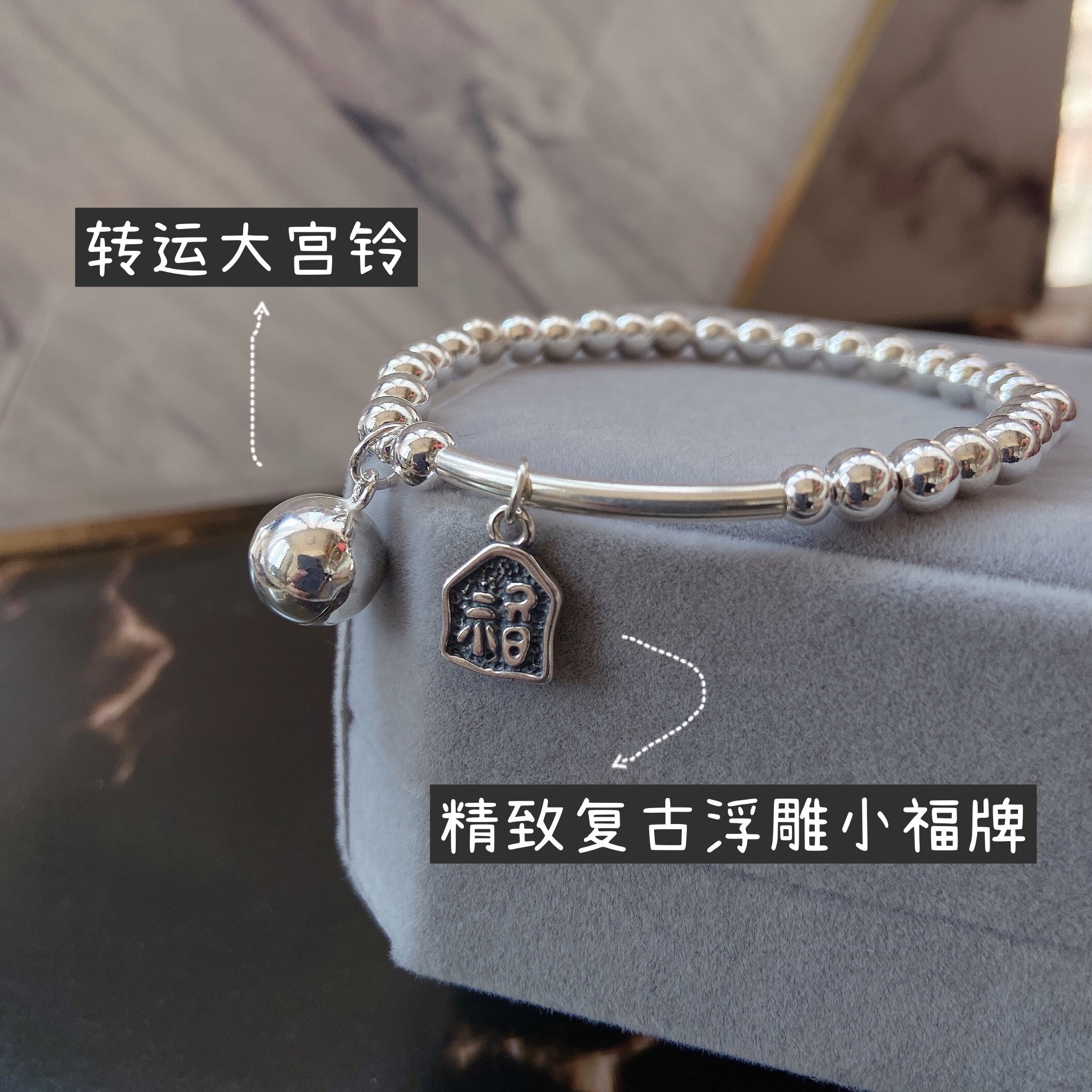 The girl of the Fluke Palace Bracelet Silver Bean 925 pure silver bean bean bean bean bean with a sound ring of the bell bracelet ancient wind