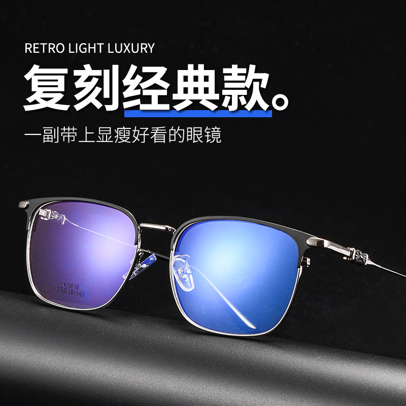 Glasses men's trendy eyebrow line metal glasses frame can be equipped with myopia degree ultra-light big face finished comfortable full frame Korean version
