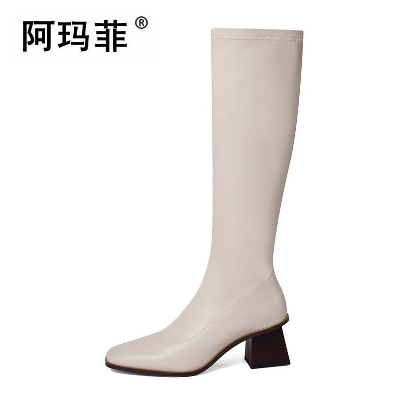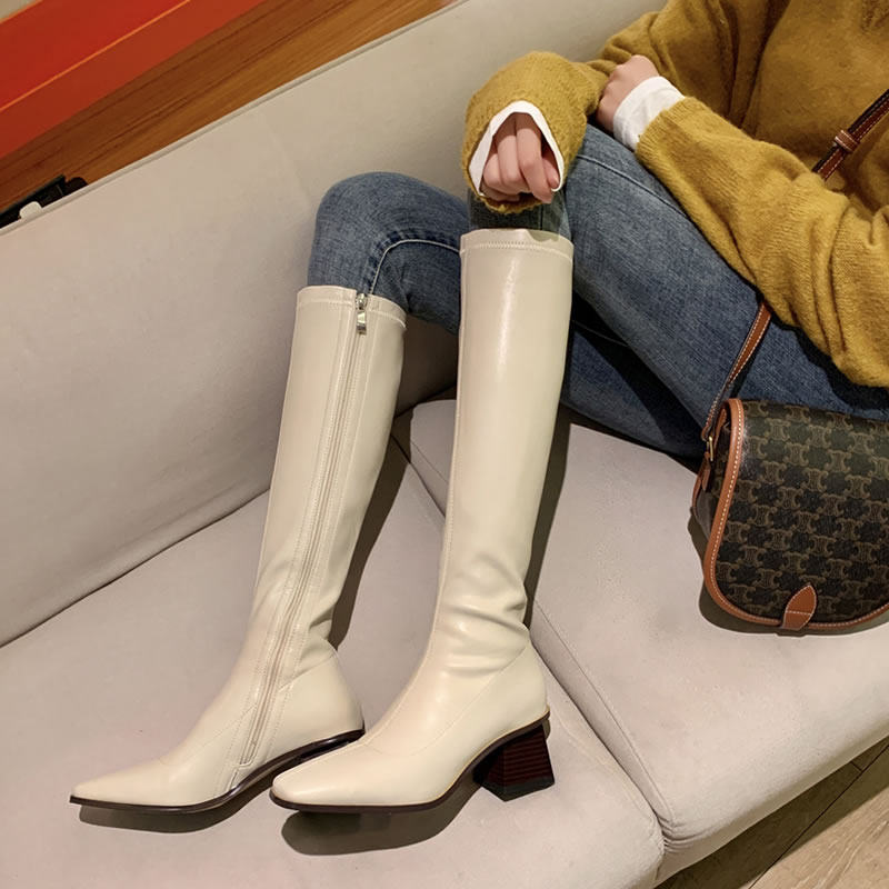 2022 autumn/winter new Korean version of Hyuna same thick heel boots but knee boots skinny boots elastic boots trend
