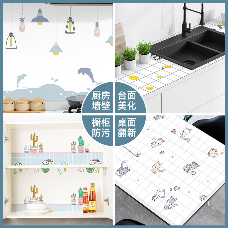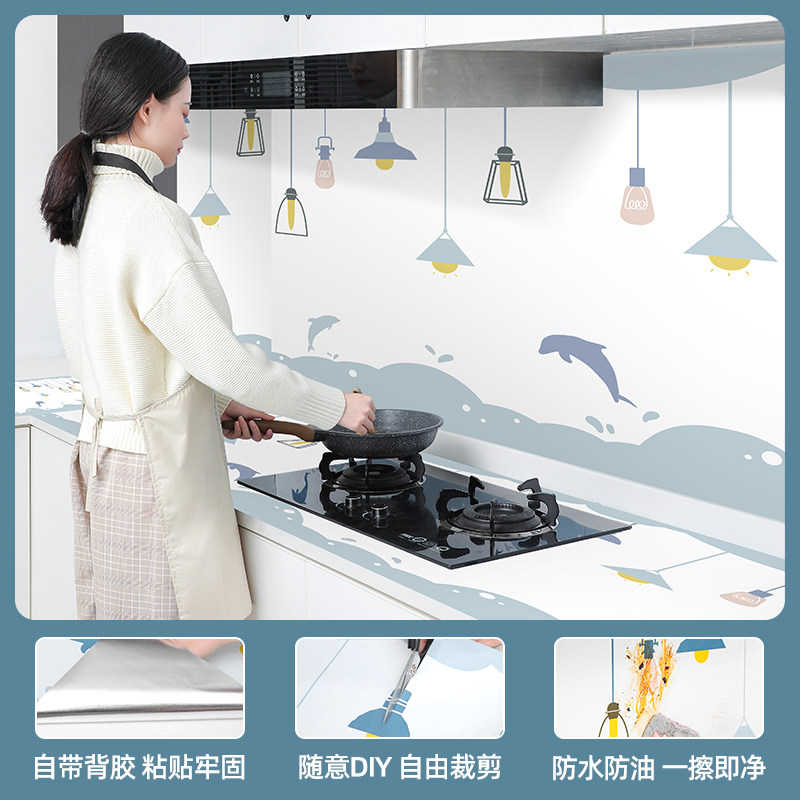 Kitchen oil-proof sticker Waterproof self-adhesive cabinet stove fireproof high temperature wallpaper hood countertop aluminum foil wallpaper