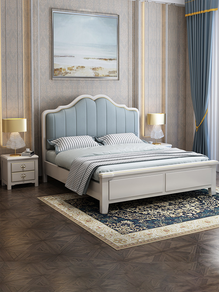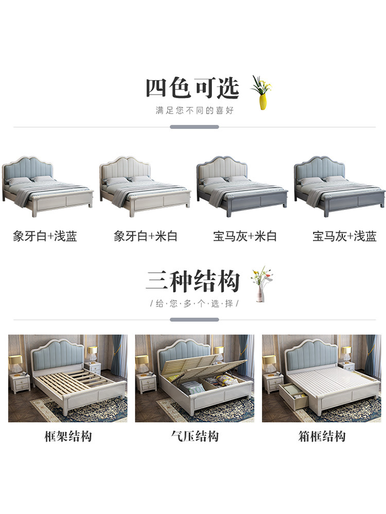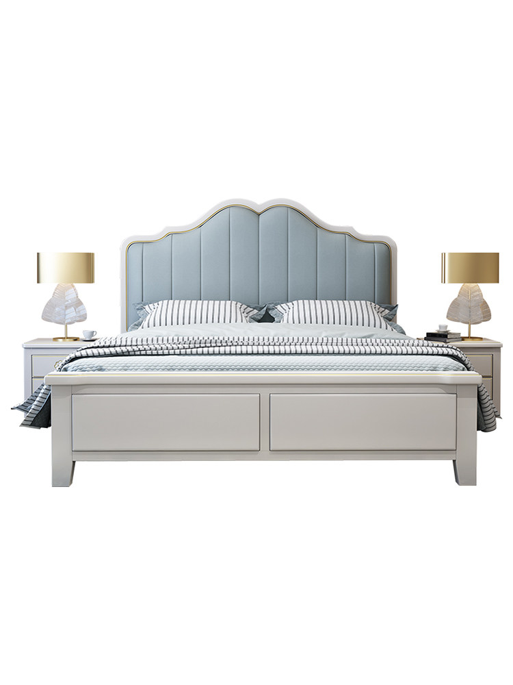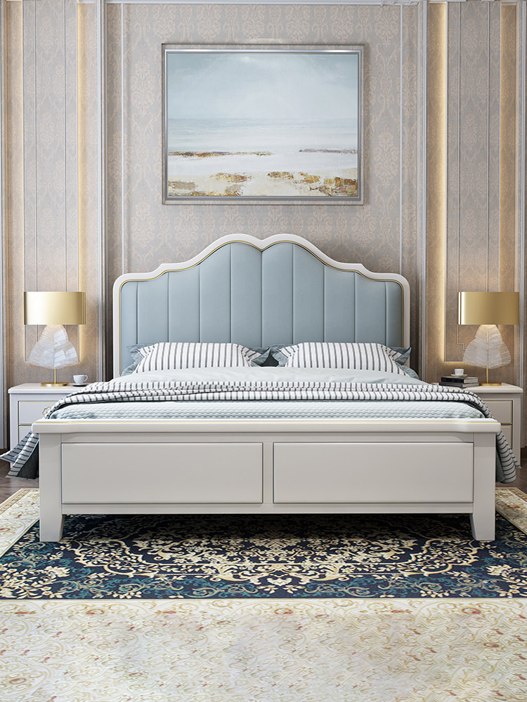 Light luxury internet celebrity American style bed 1 8 meters solid wood leather bed 1 5 meters simple modern master bedroom high box storage double bed