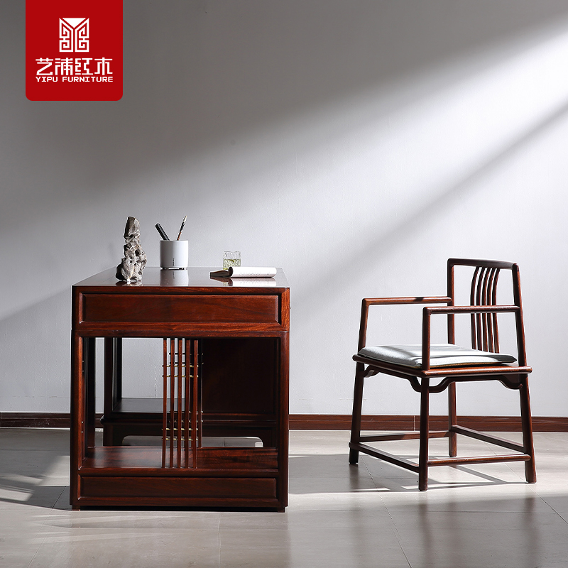 Yipu national standard mahogany new Chinese style bookcase writing desk rosewood hedgehog rosewood minimalist furniture decoration