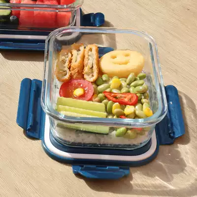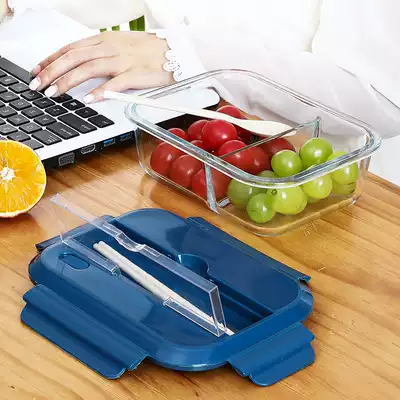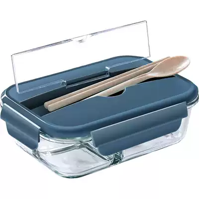 Glass lunch box divider type office worker with rice can be heated special bowl student lunch box set