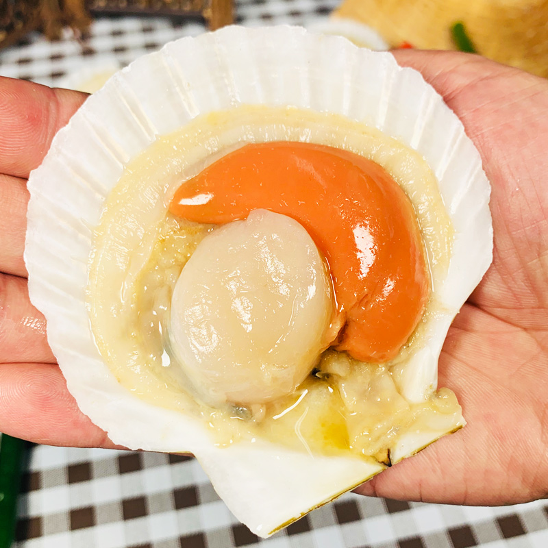 Scallop fresh extra-large with shell large scallops Garlic Hibiscus Fans Scallop Half Shell Shellfish Frozen Seafood Aqua