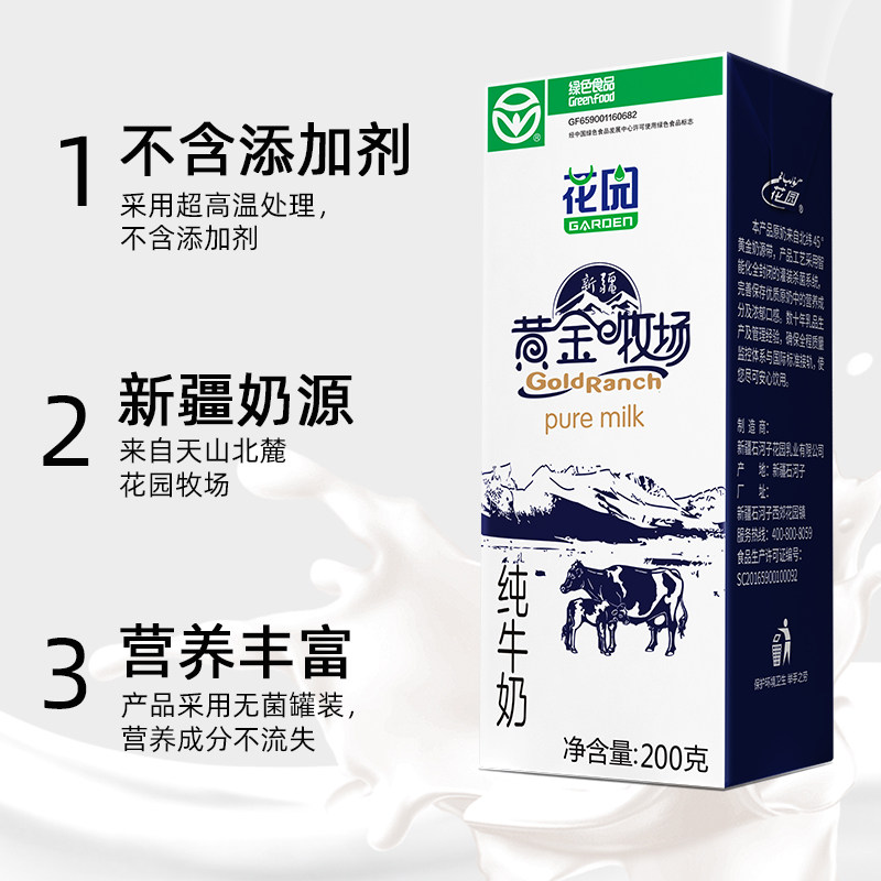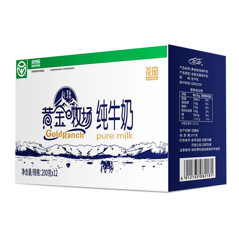 Xinjiang Garden Golden Ranch pure milk 200g * 12 boxes of adult pregnant women pure milk nutrition breakfast milk