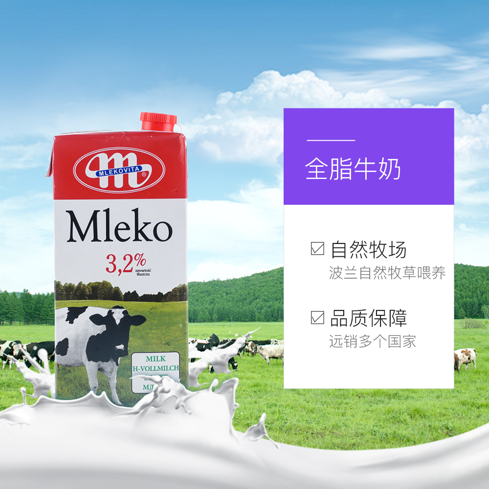 Poland imported Mlekovita whole milk Miaoya vat full box of nutritious pure milk 1L*12