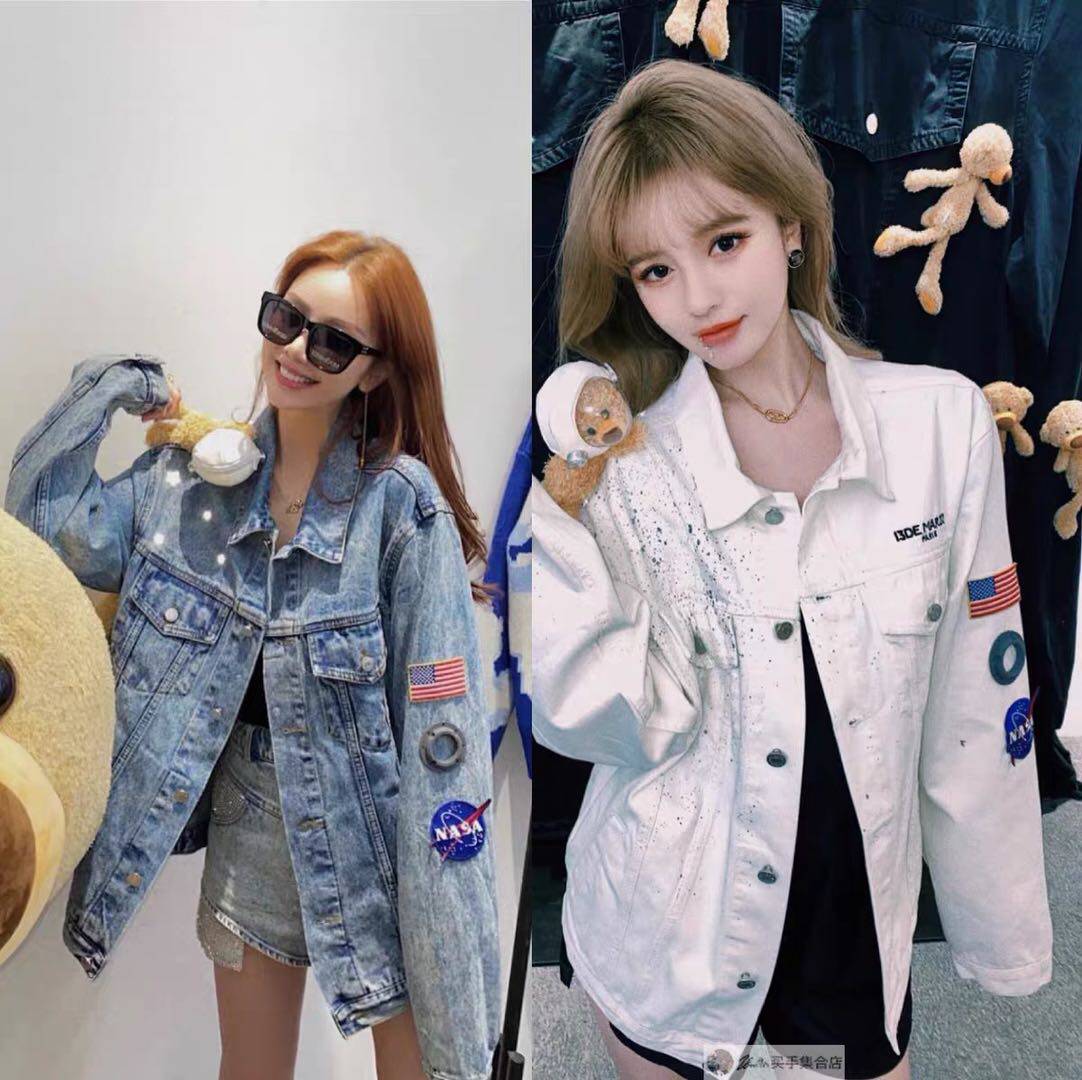 Happy Brother's 13DE MARZO2020FW NASA Partnership Astronaut Little Bear Denim Jacket Woman Jacket