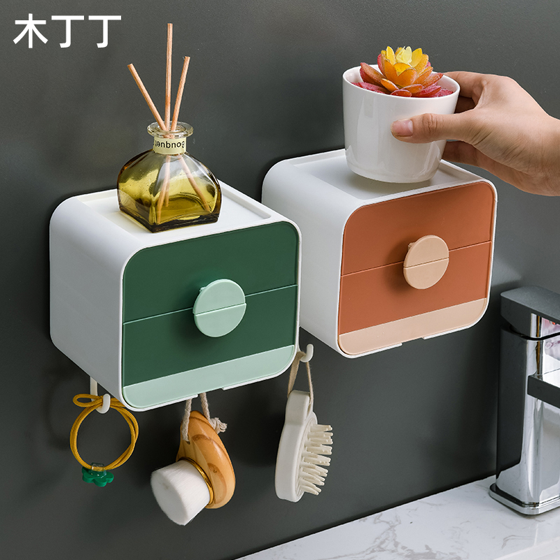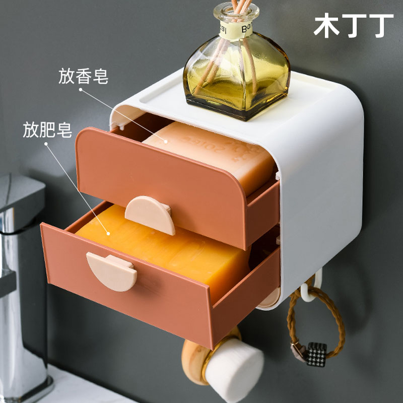 Creative soap box soap box bathroom shelf free punched wall hanging drain toilet double storey with lid