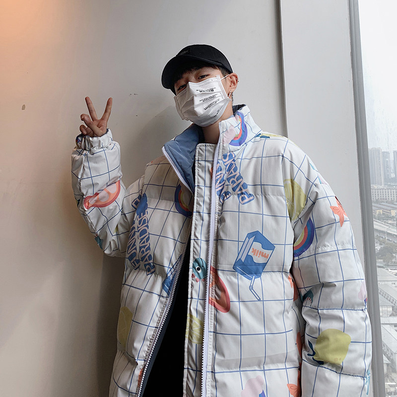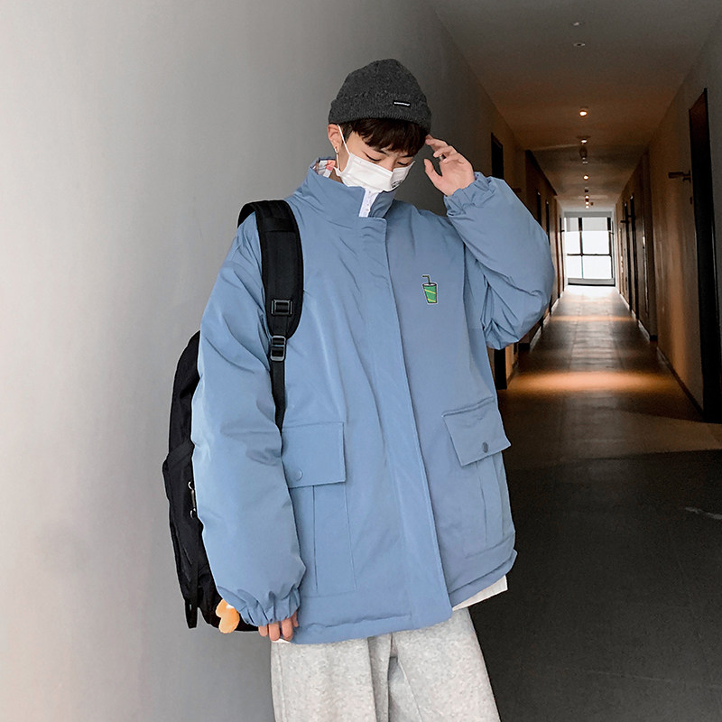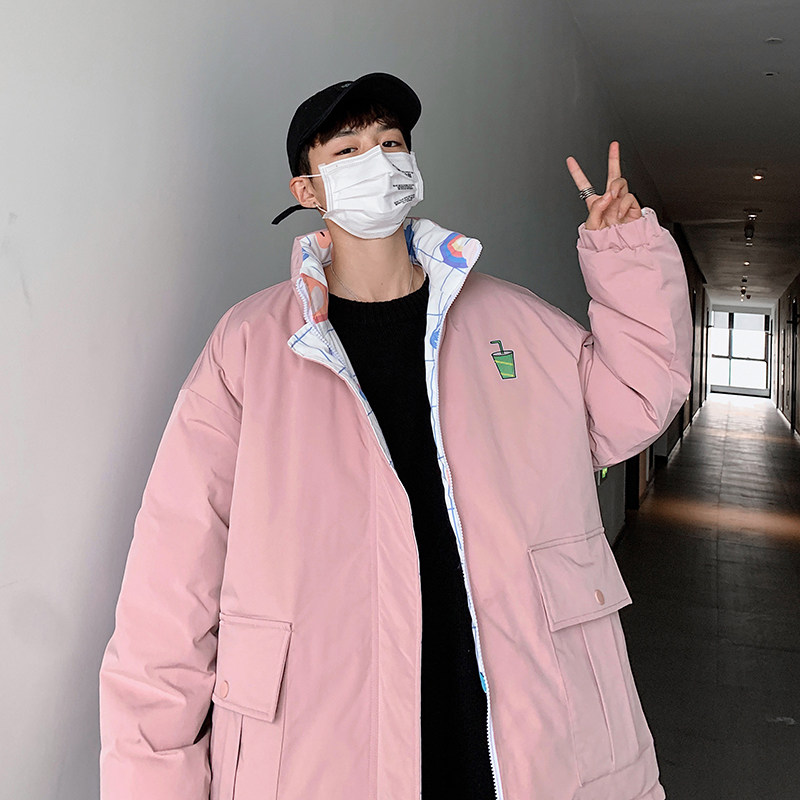 Double-sided cotton-padded men's tide brand loose and simple large pocket down padded jacket thickened couple padded jacket winter jacket men