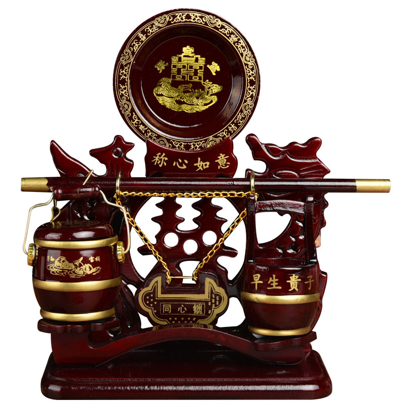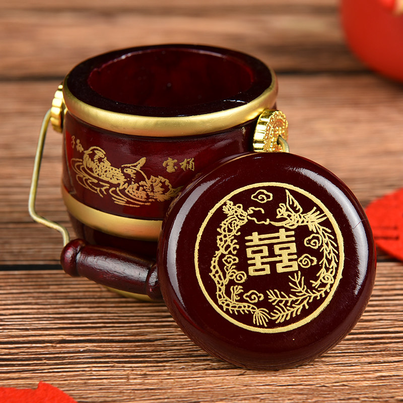 Retro Mahogany Color Large Descendants Bucket Set Wedding Wedding Toilet Concentric Lock Treasure Bucket Dowry Ornament Supplies