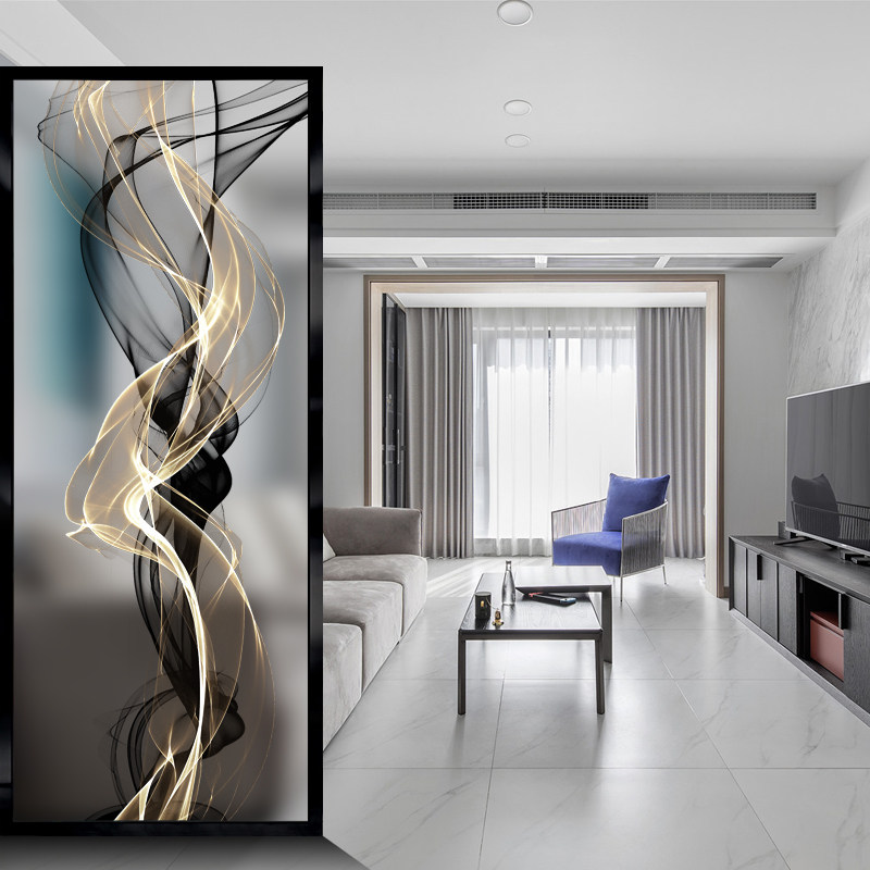 Modern light luxury simple art glass screen partition living room entrance bathroom background wall frosted transparent light