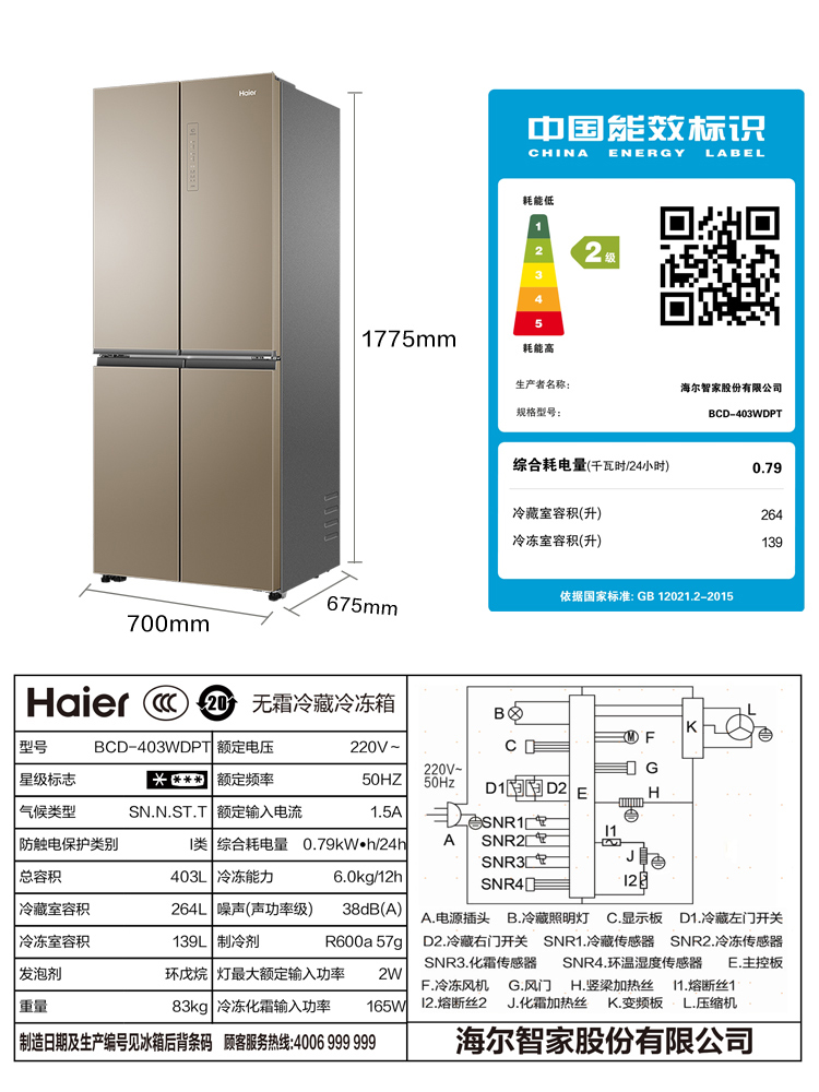 Haier Haier BCD-403WDPT cross to door open four doors frequency conversion air-cooled home energy saving refrigerator l