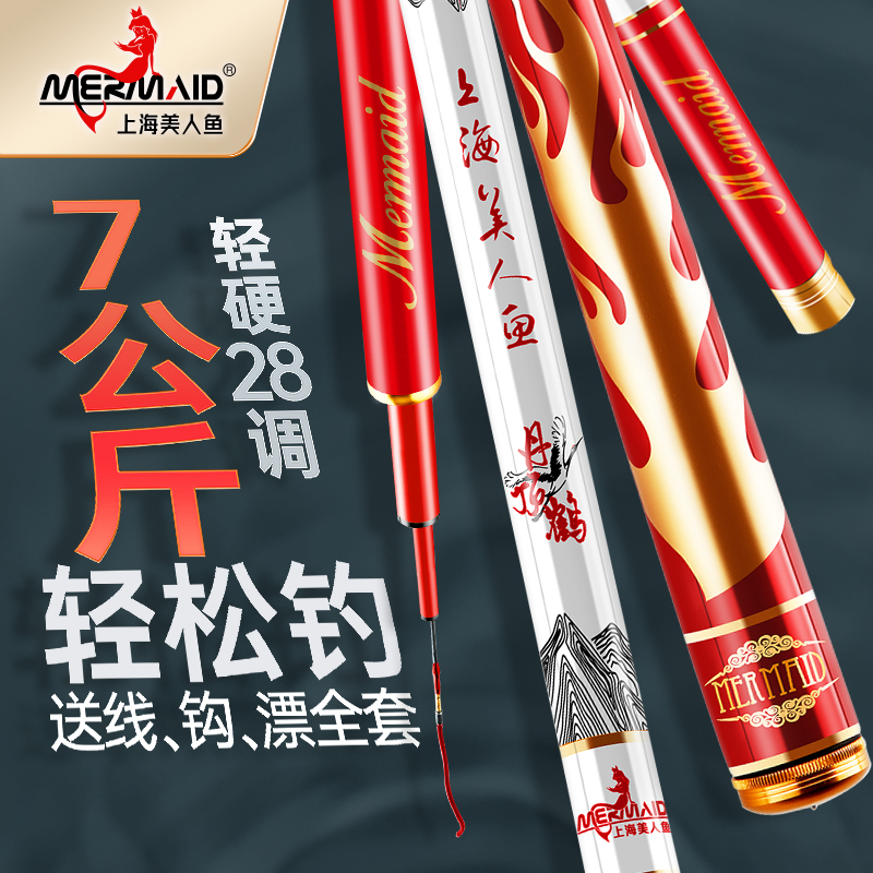 Mermaid fishing rod with pole super-light ultra-hard 28 adjustment for fishing rod carbon tanned crane crucian carp black pit rod
