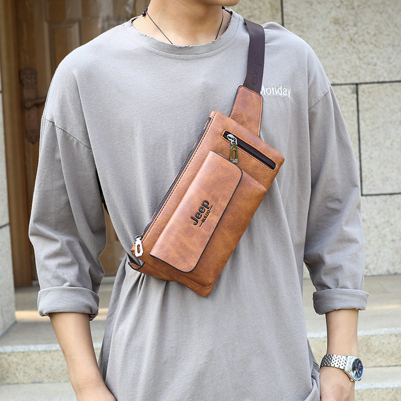 PU Leather Chest Bag Waist Bag Korean Edition Casual Men's Bag One Shoulder Messenger Bag Small Backpack Trendy Men's Sports Men's Chest Bag Foreign Trade