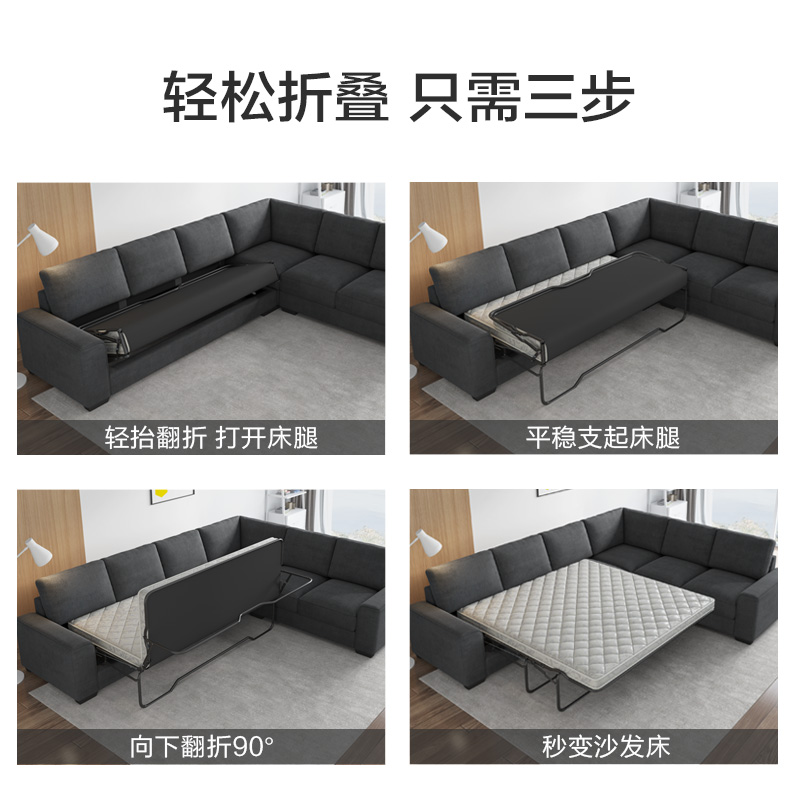 Fabric sofa bed solid wood frame modern minimalist Nordic style small apartment removable and washable living room folding dual-use furniture