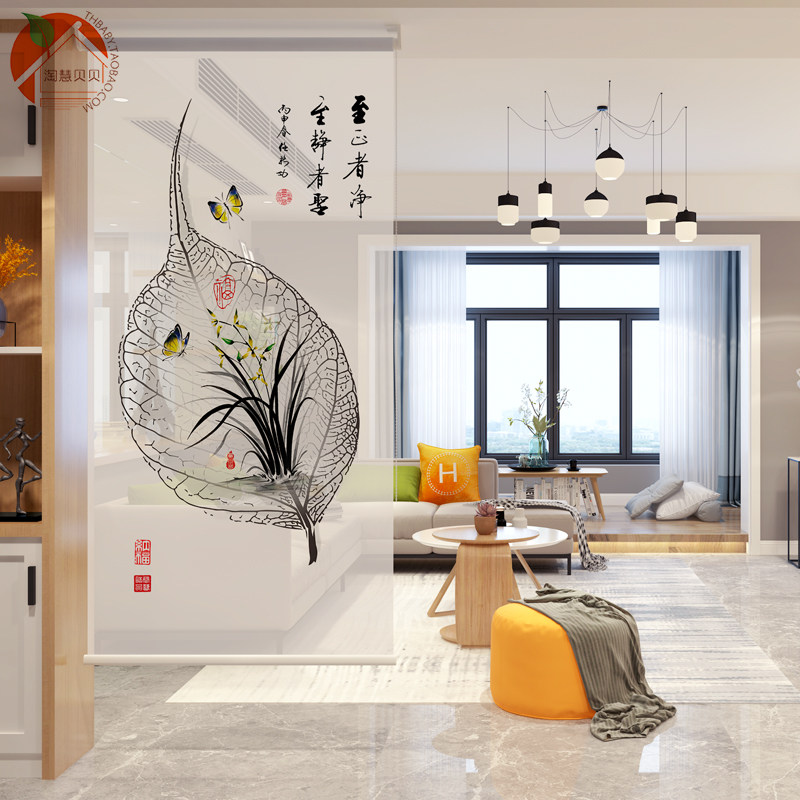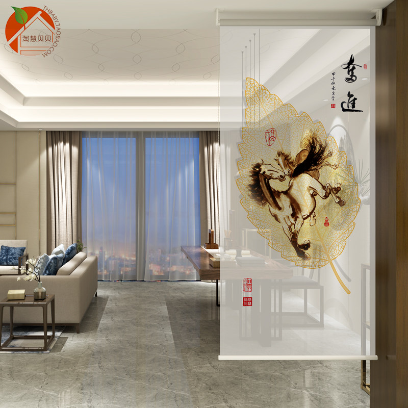 Modern new Chinese soft curtain Entrance Screen curtain Living room Lift hanging screen Restaurant Half overdraft Soft Partition Suspended Screen-Taobao
