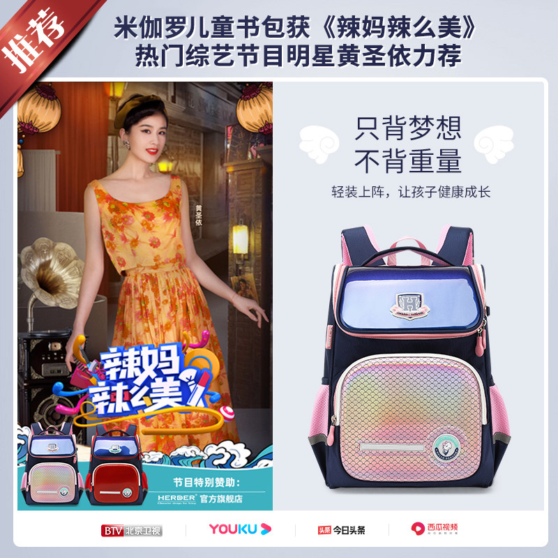 (Stars Recommended) Primary school children's school bag One-third-fifth-year-old child light 6-12-year-old female protective crest minus the man-Taobao