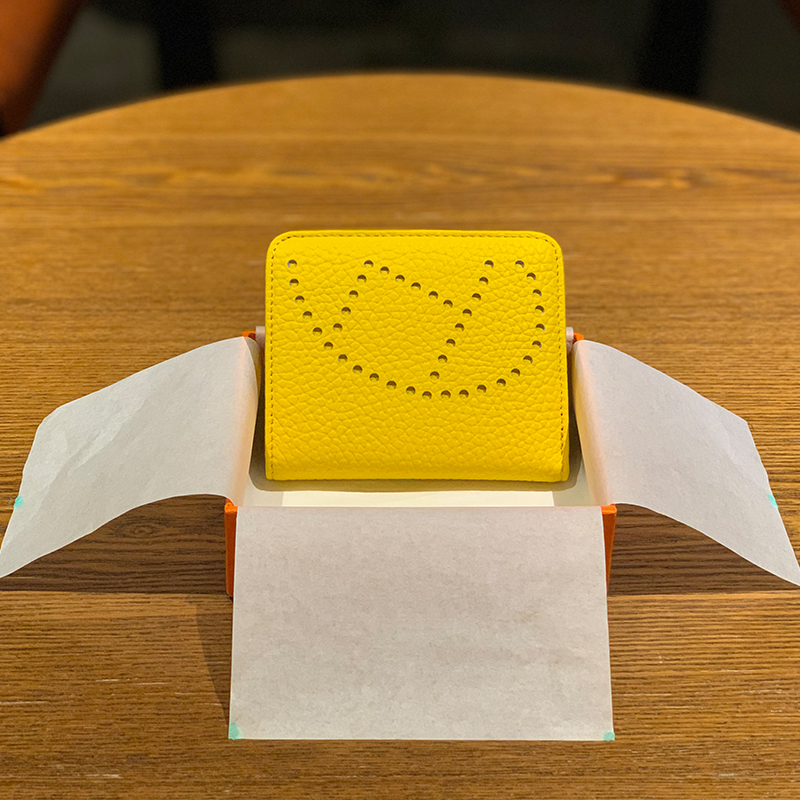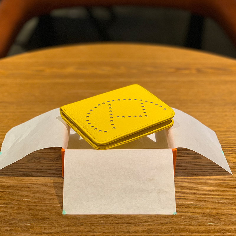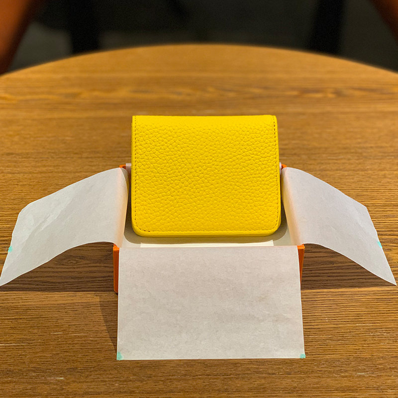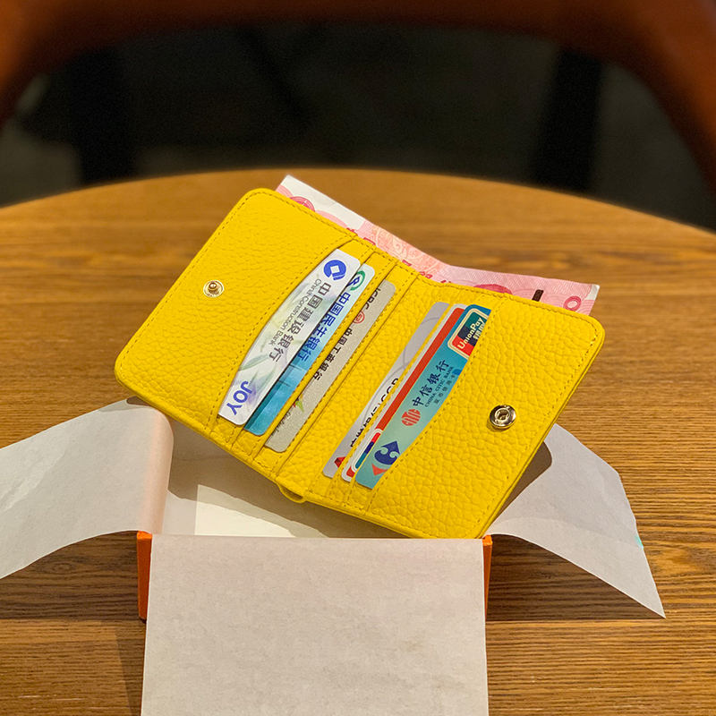 Yellow wallet Purse Chaewoman Short Hollowed-out Slim two-fold folding head laminated cow leather buckle large banknote clip European and American fashion