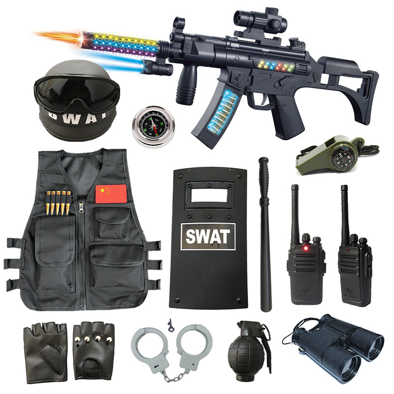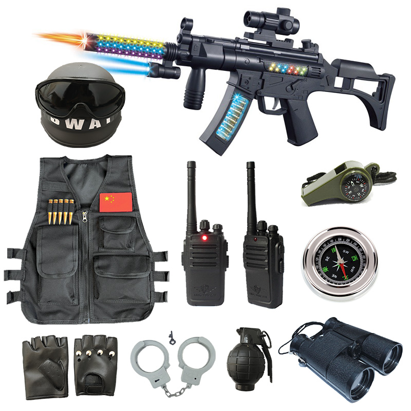 Sound and light toy gun sound rocket tube 3 artillery pot sound and light gun equipped with 13 pieces of sound light gun black vest twelve pieces of camouflage vest