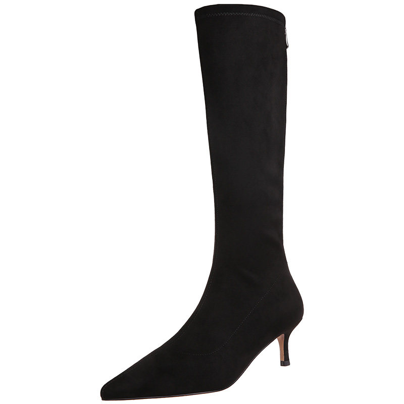 2021 new spring and autumn boots women's knee-high stiletto boots elastic thin boots high-heeled pointed toe tall boots