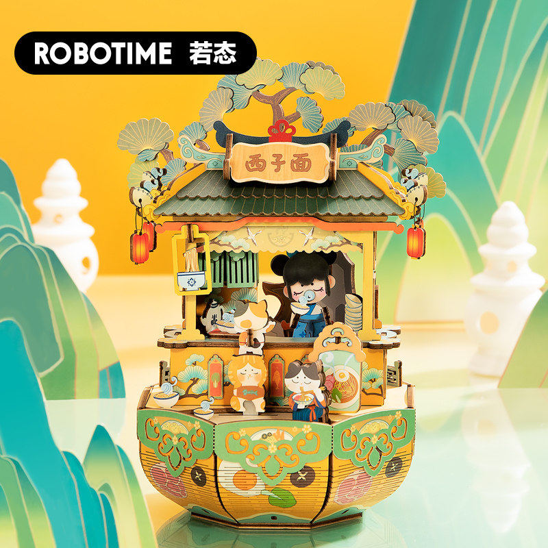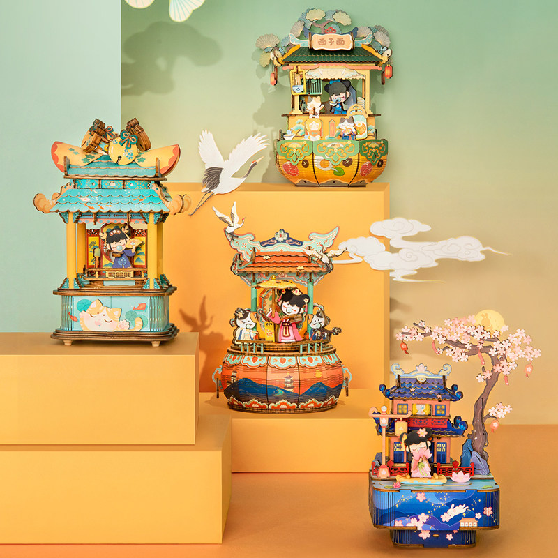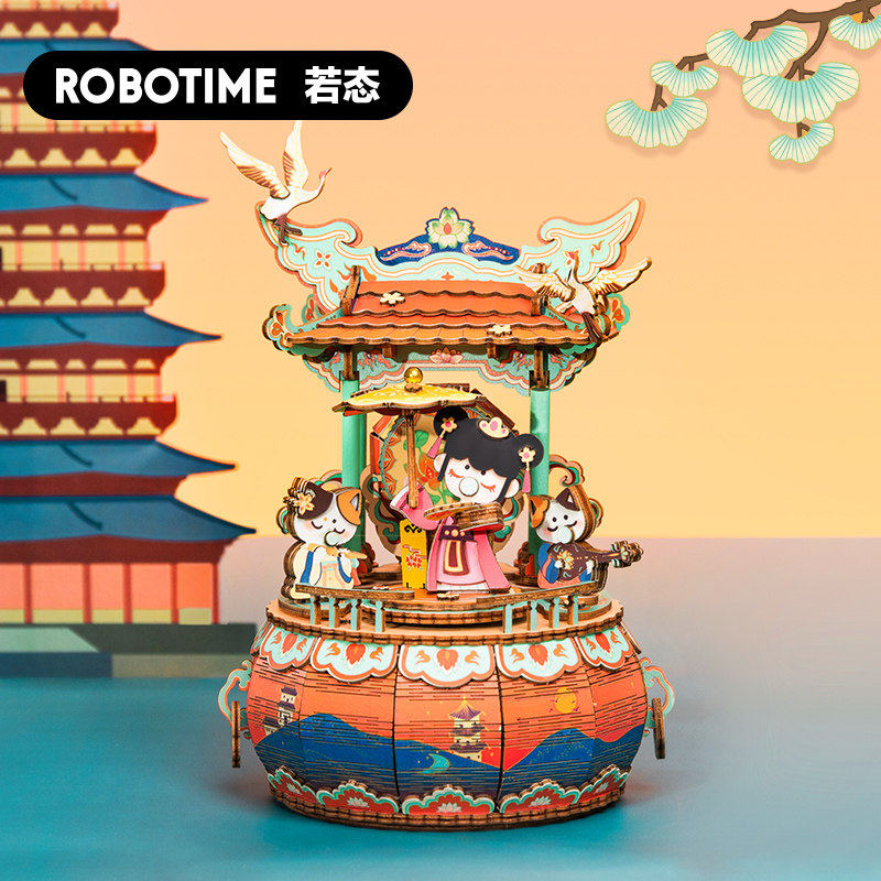 Ruo Ruo nanci ancient style music box wooden diy drunk Lantern Music this evening he Xi Jigsaw puzzle model gift