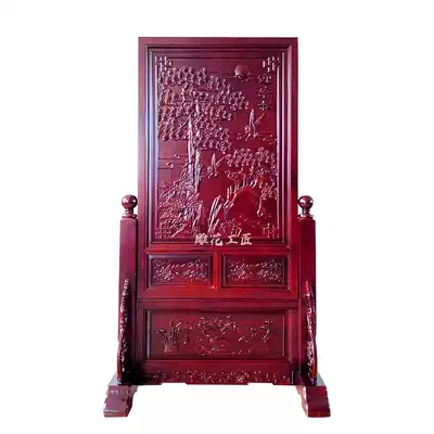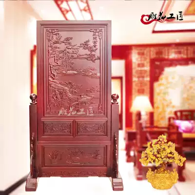 Screen partition seat screen landscape living room entrance small household entrance entrance double-sided carved mahogany new Chinese insert screen